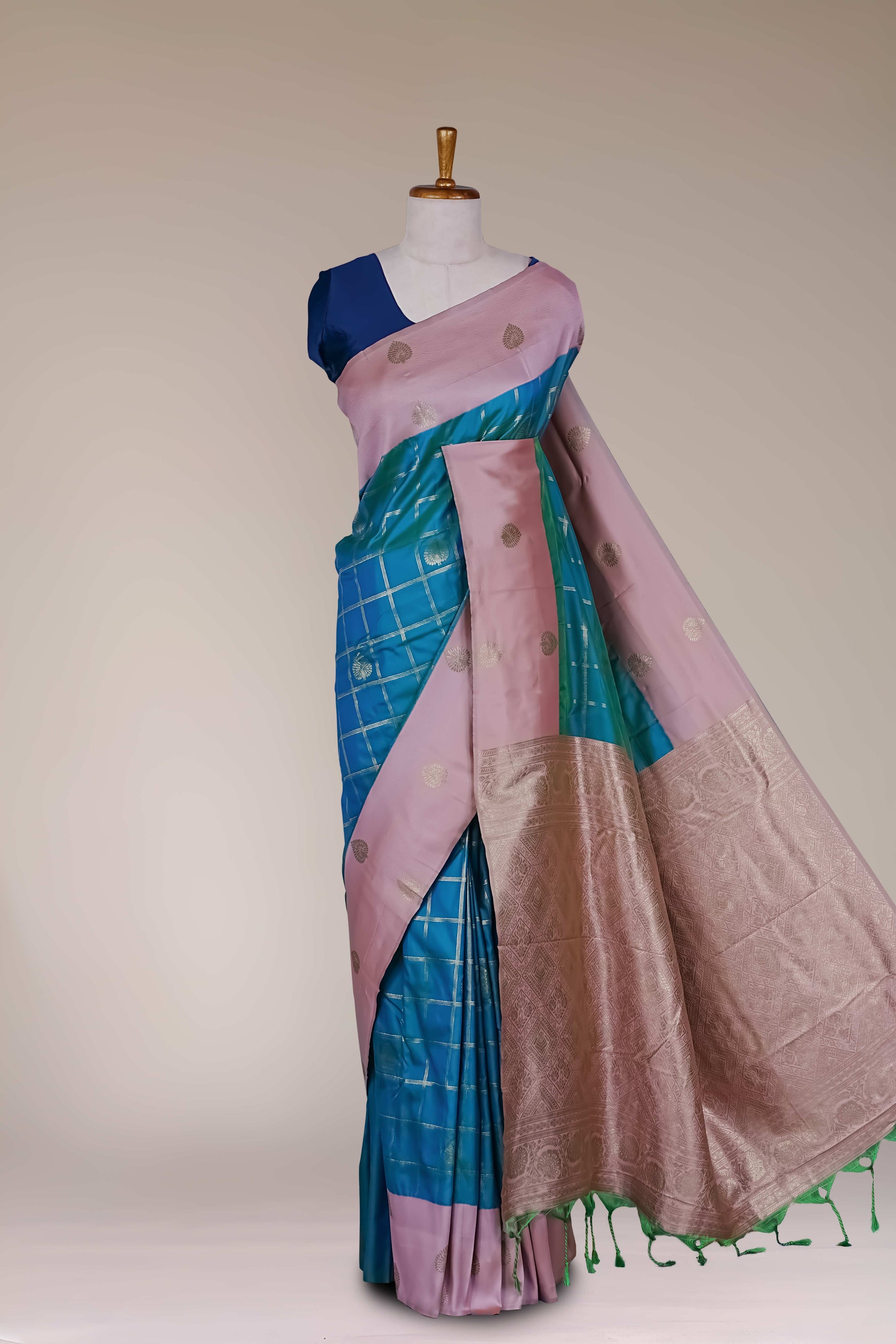 Art Silk Zari Check Contrast Border