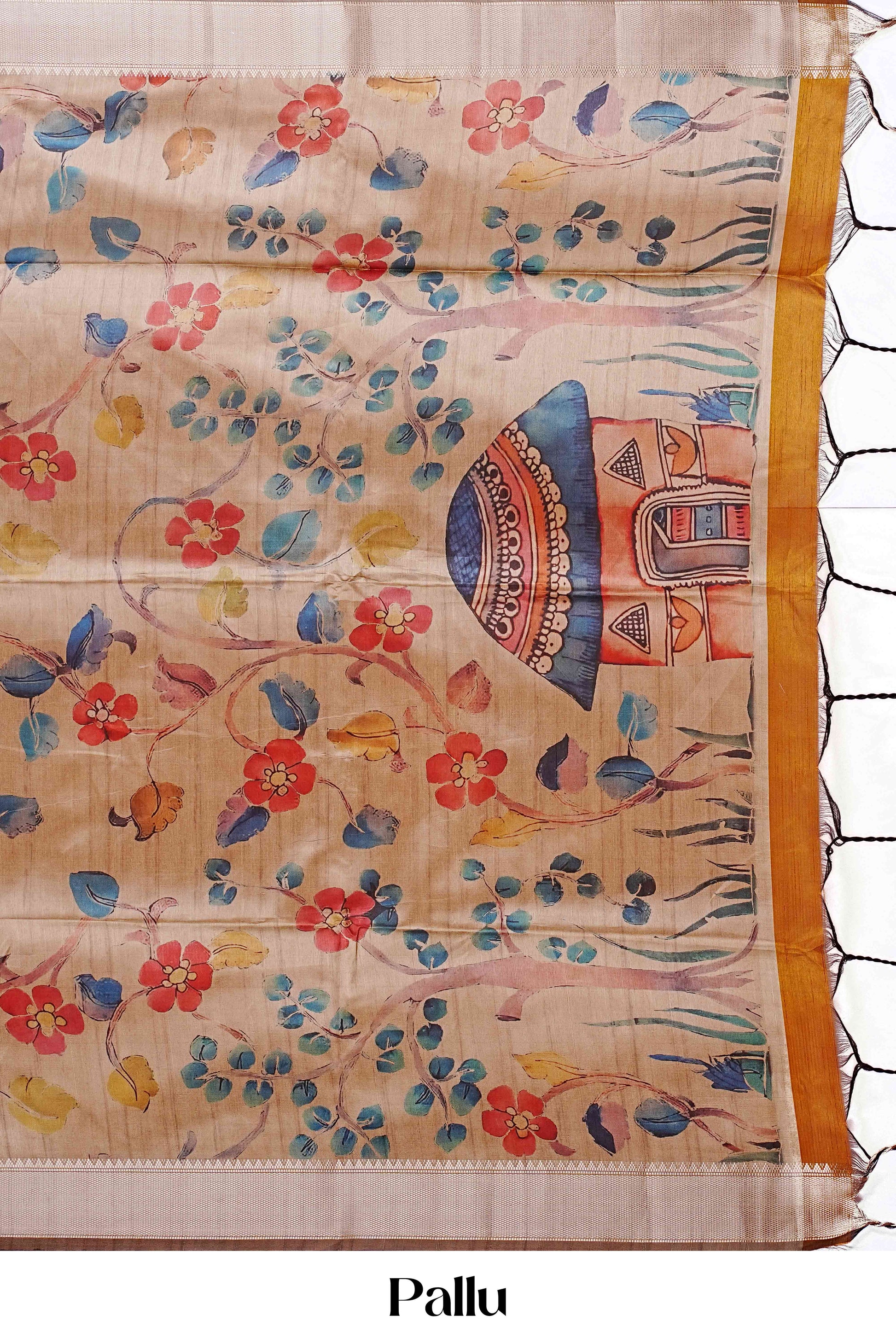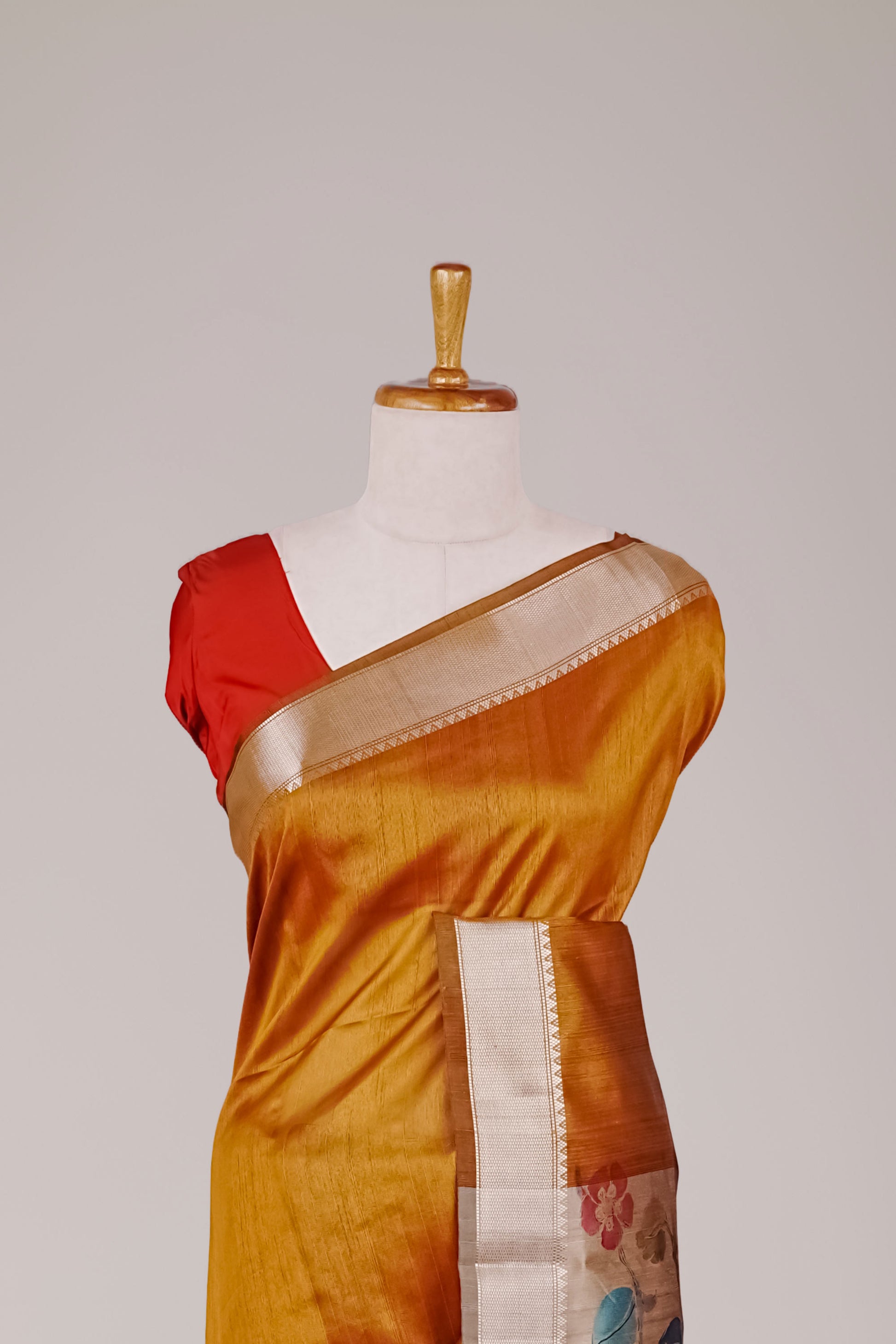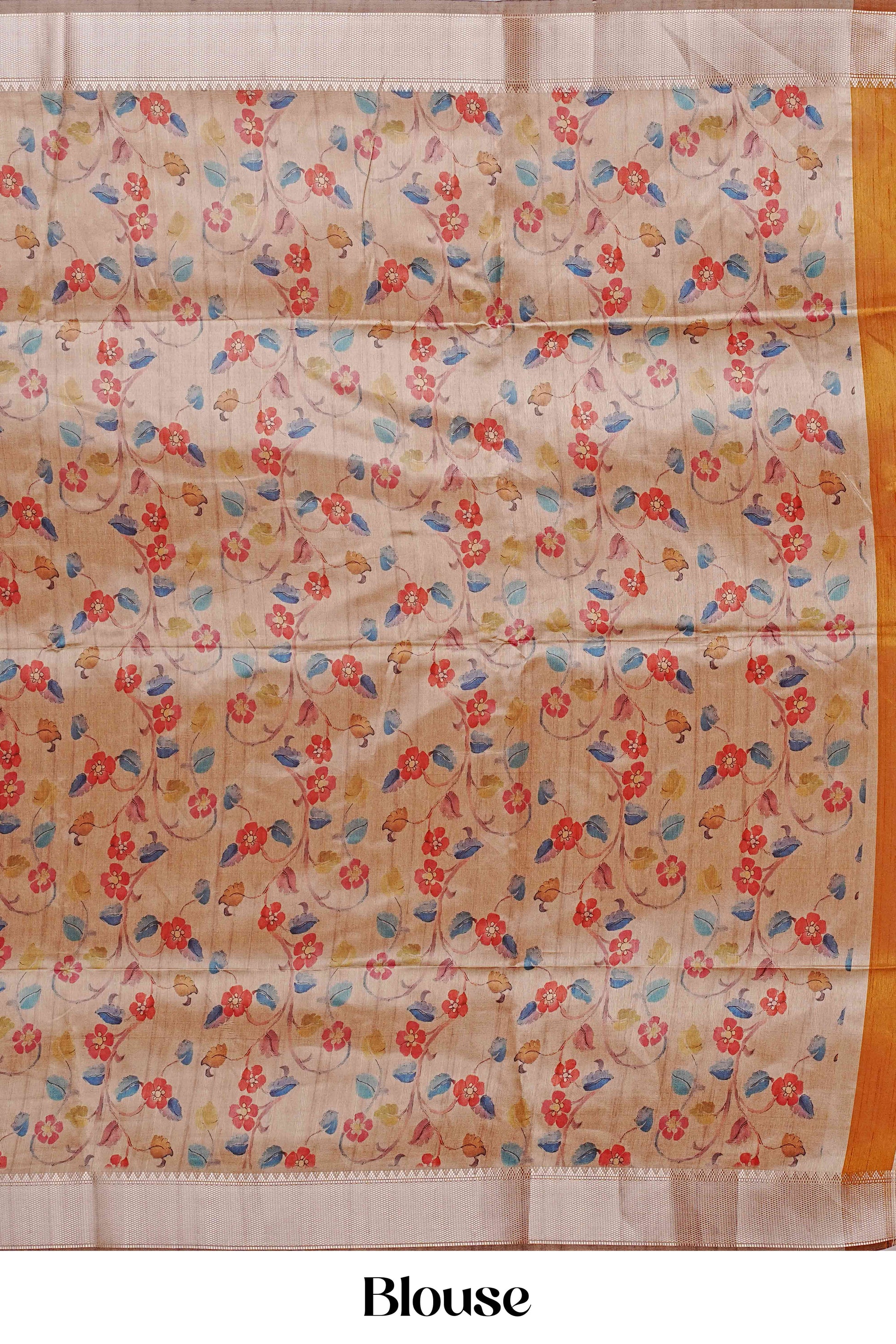 Chappa Tussar Plain Floral Print In Pallu Zari Border