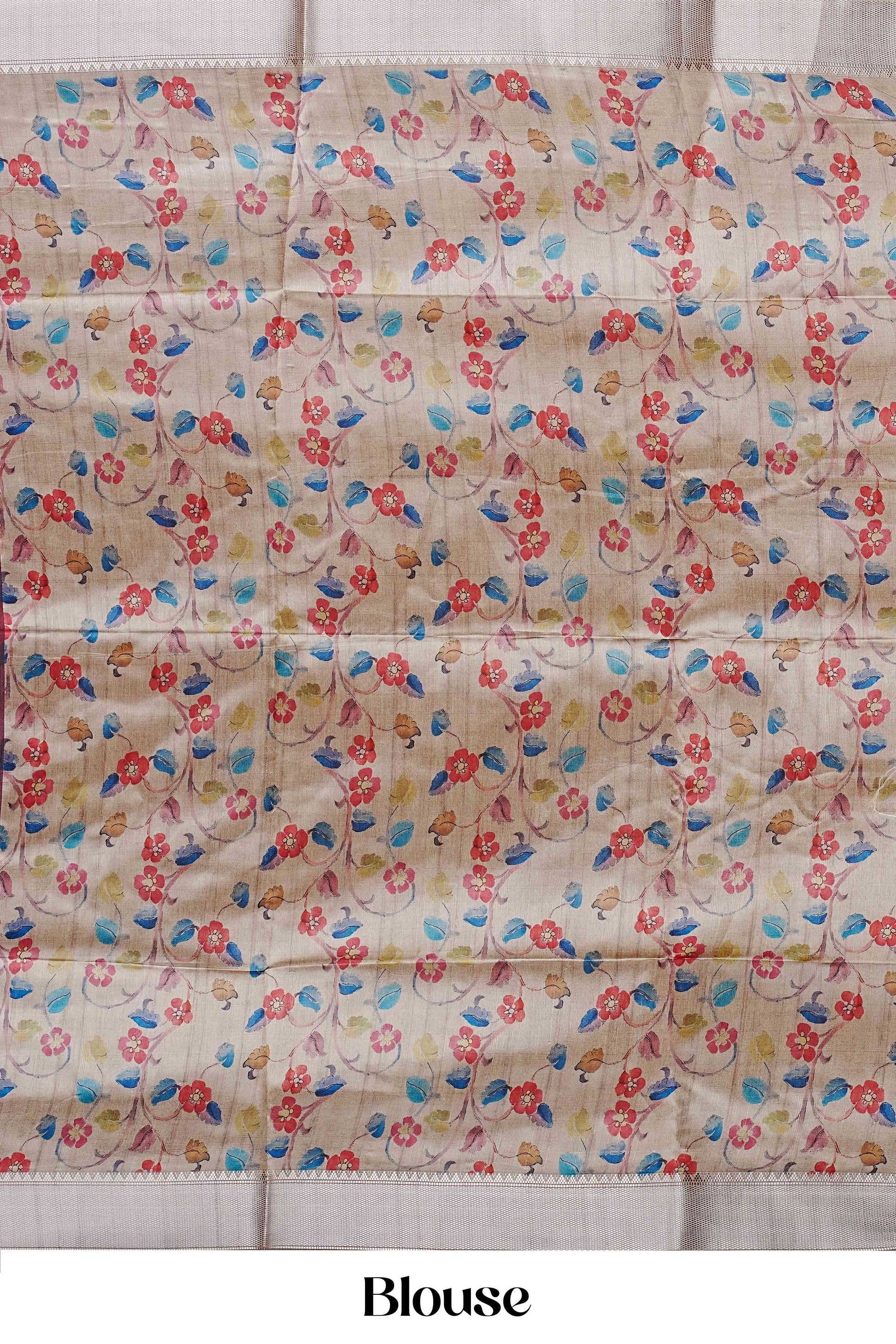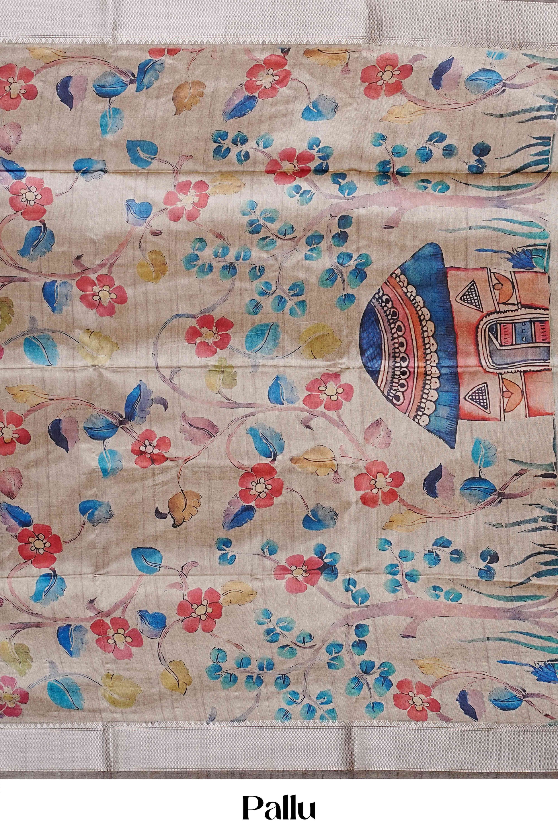 Chappa Tussar Sarees Plain Floral Print In Pallu Zari Border