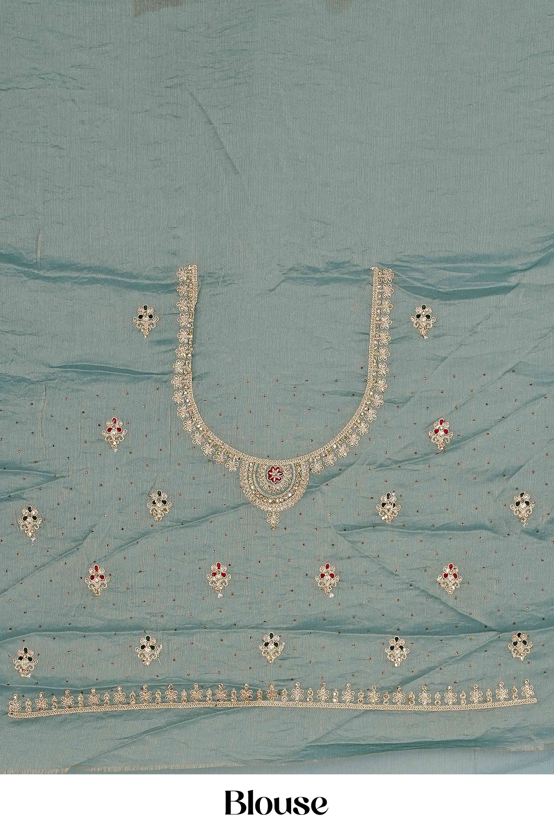 Fendi Chiffon Gold Zari Embroidery With Swarovski Stone Saree