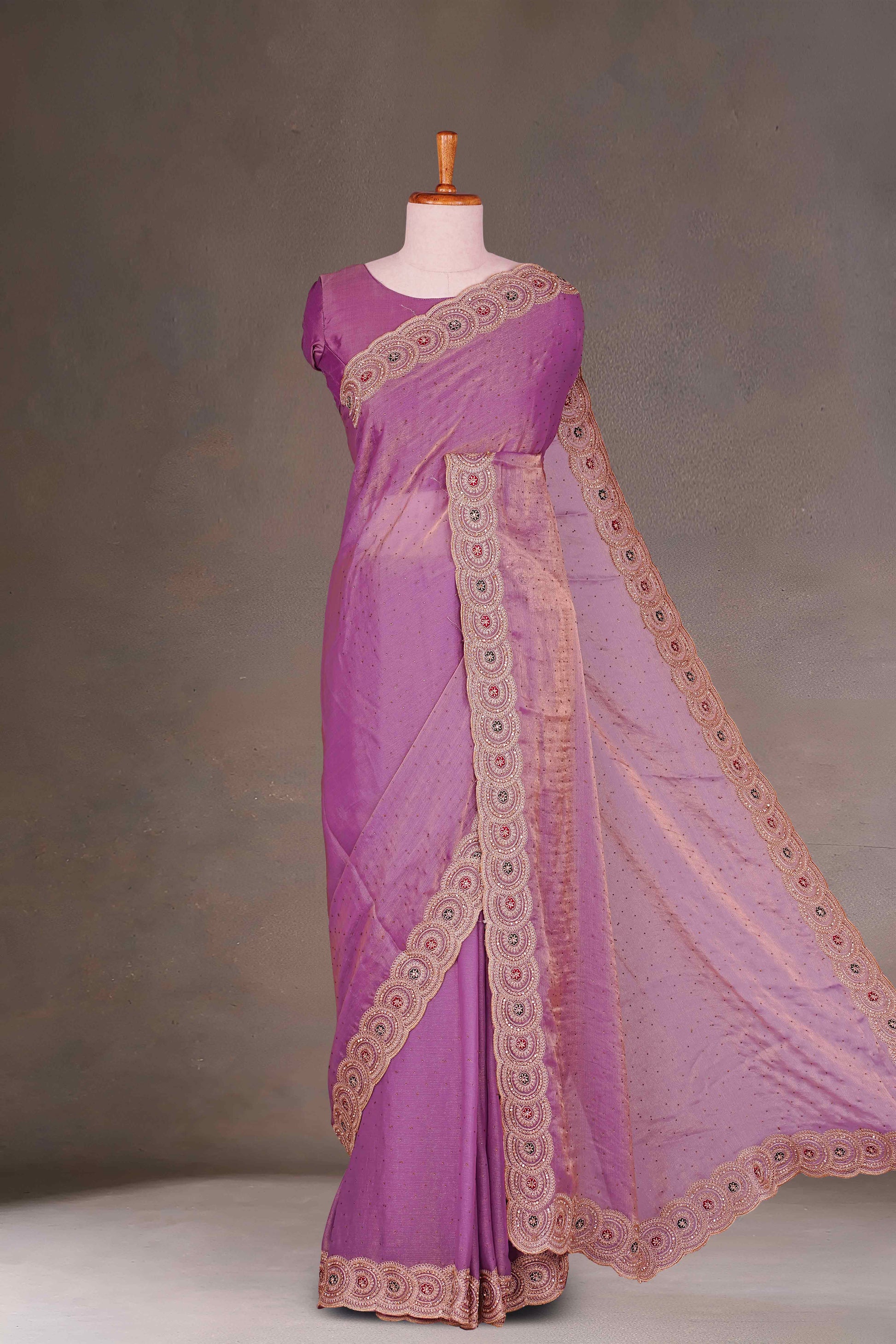 Fendi Chiffon Gold Zari Embroidery With Swarovski Stone Saree