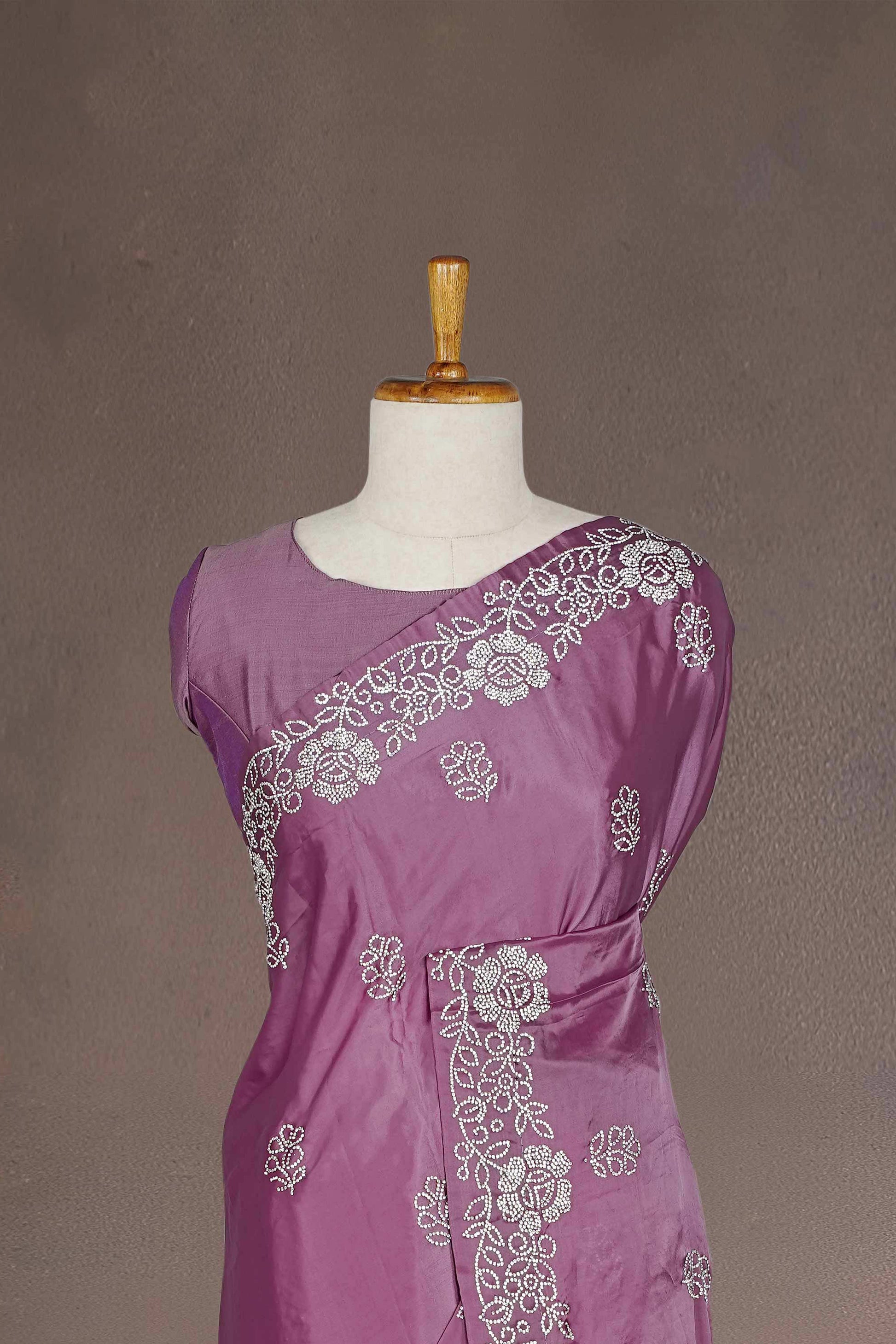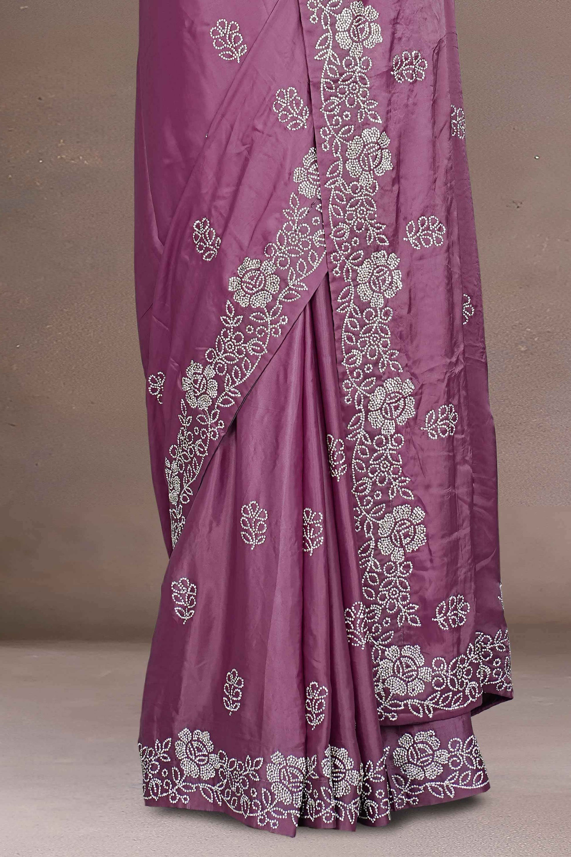 Satin Zarkan Diamond Butta With Piping Border Saree