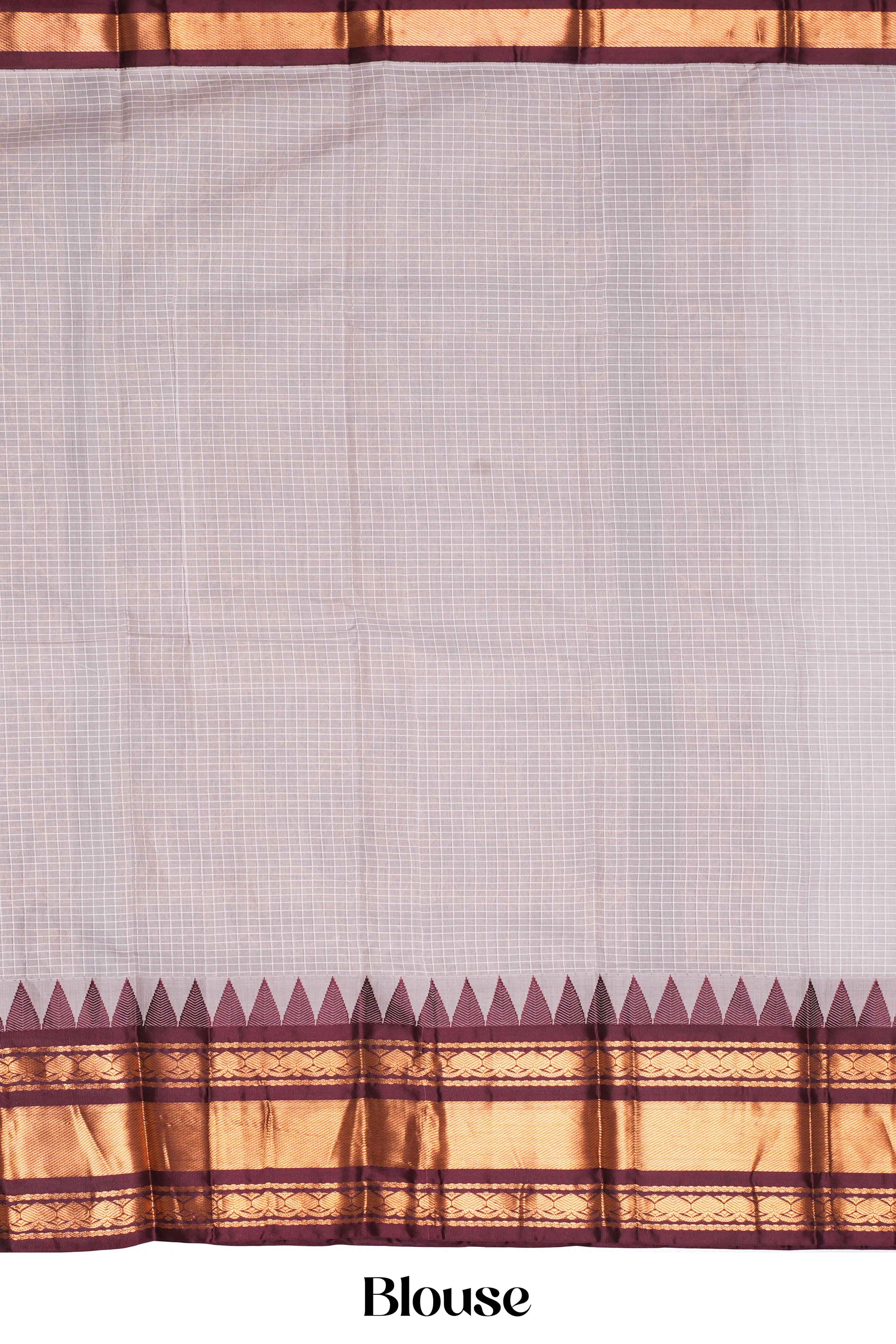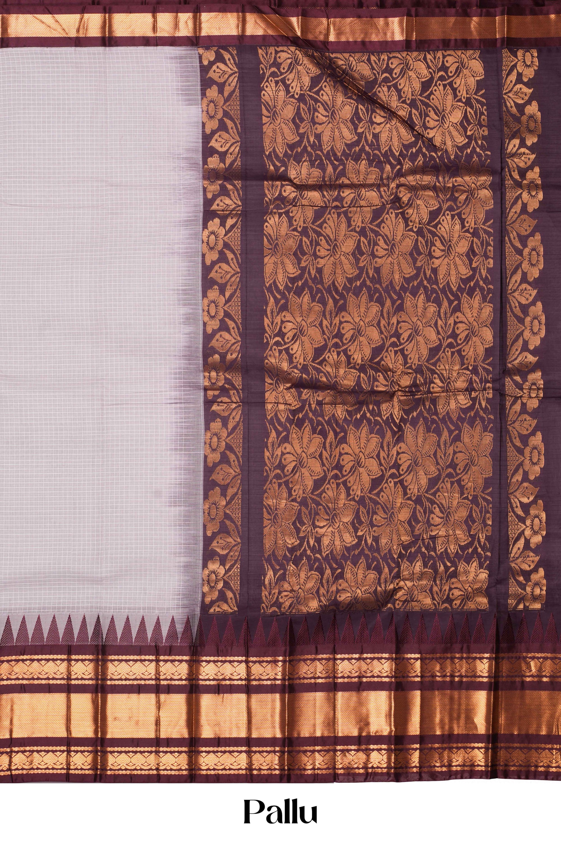 Grey Checked Sarala Cotton Saree With Temple Zari Border