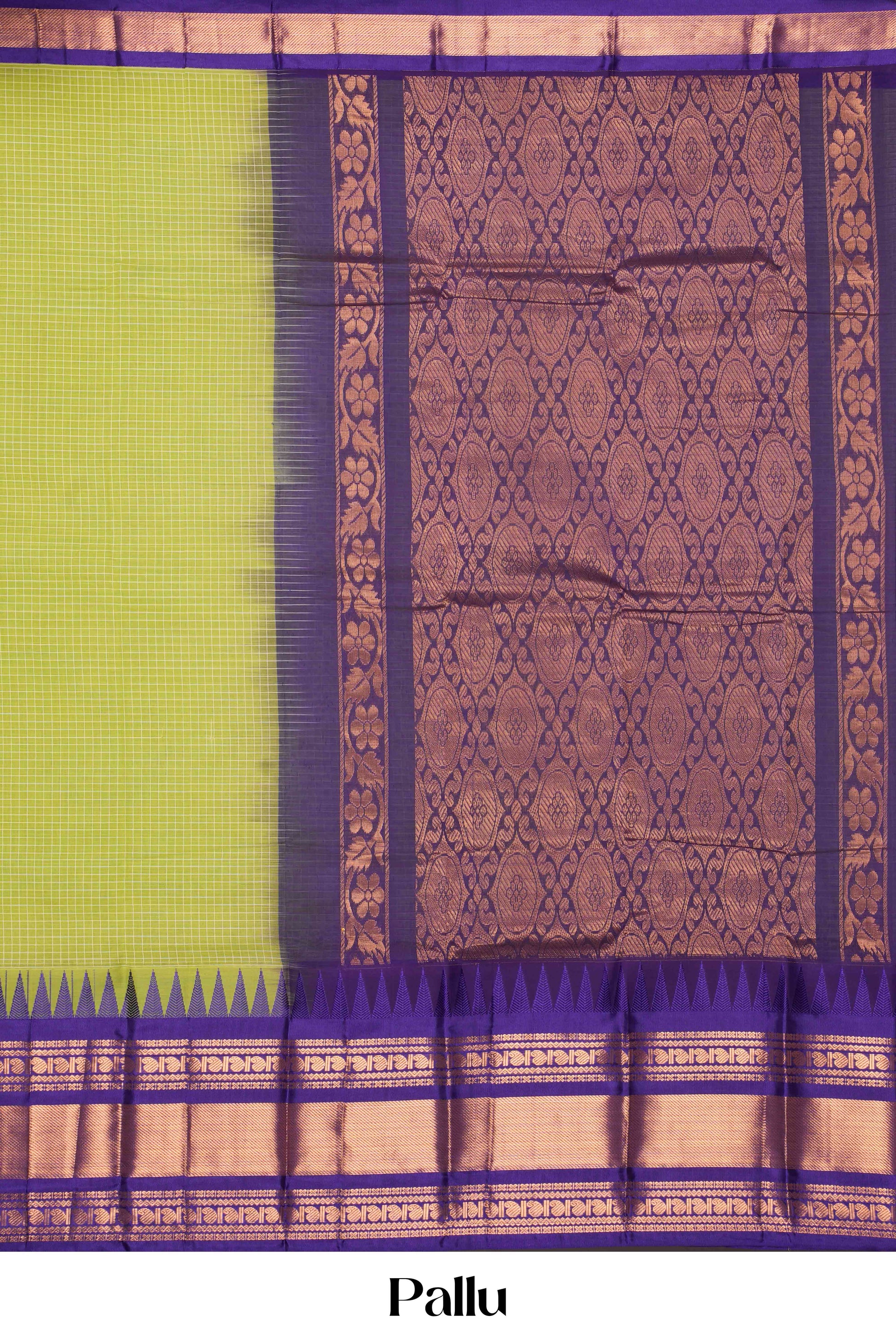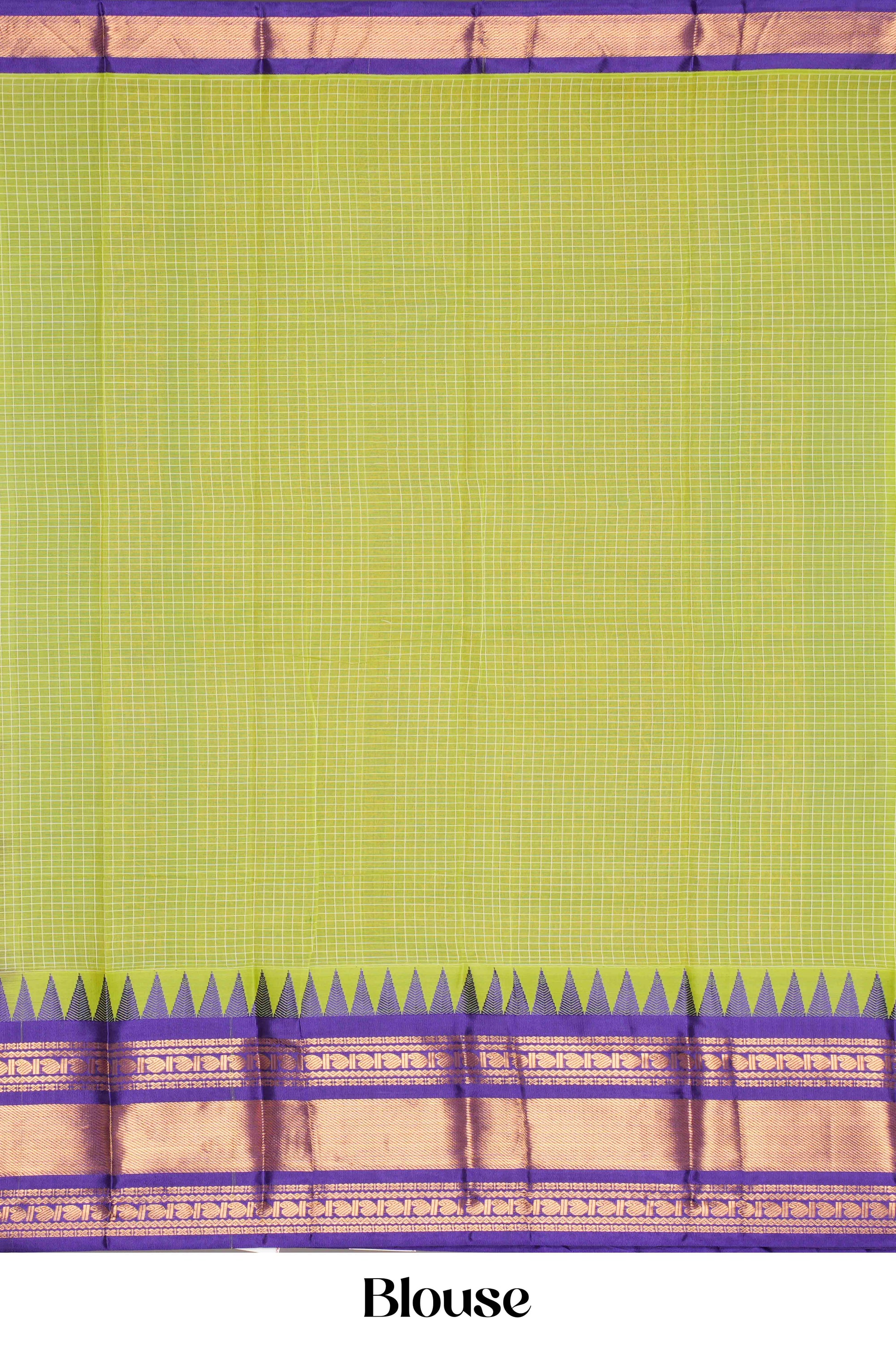 Green Checked Chirala Cotton Saree With Temple Zari Border