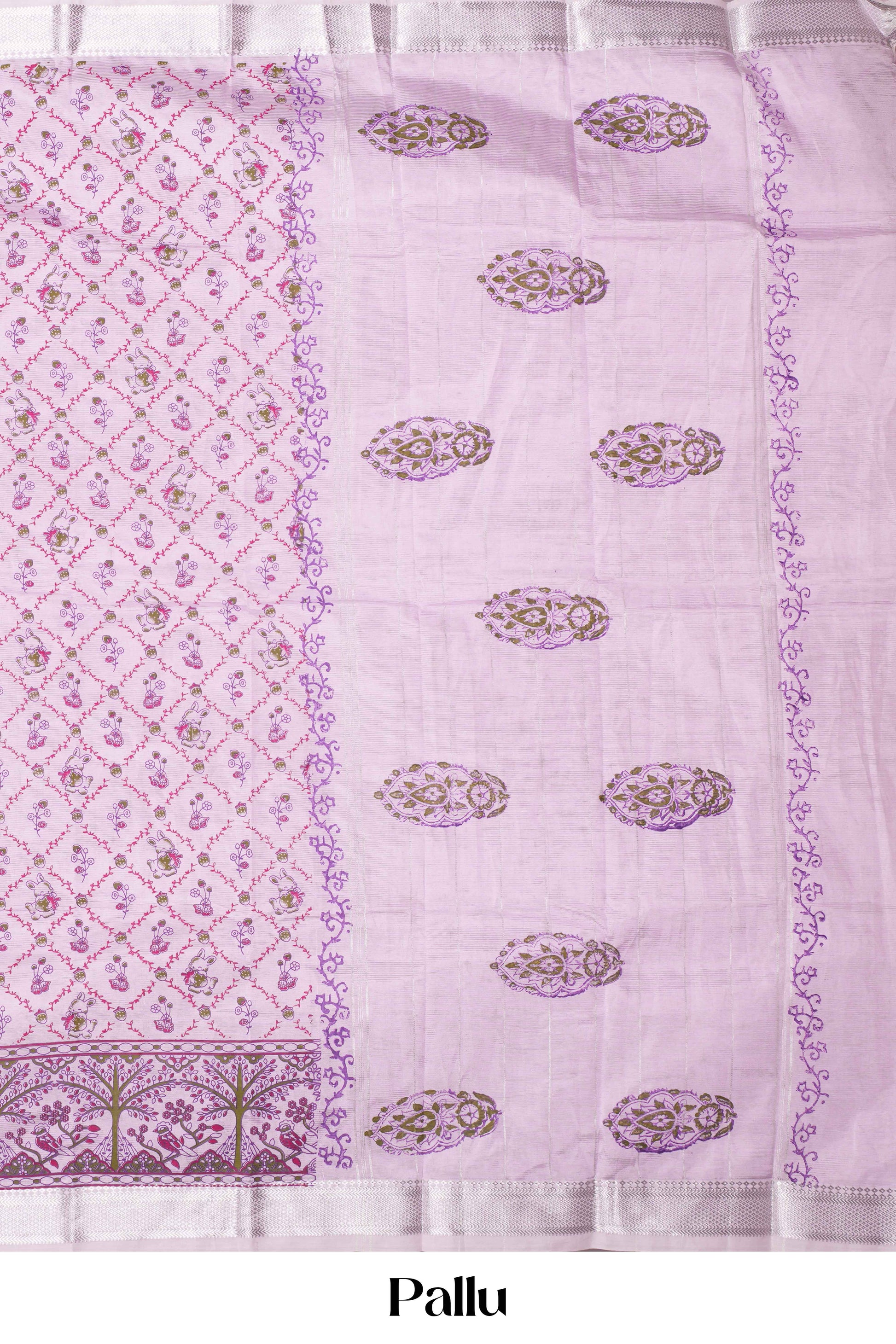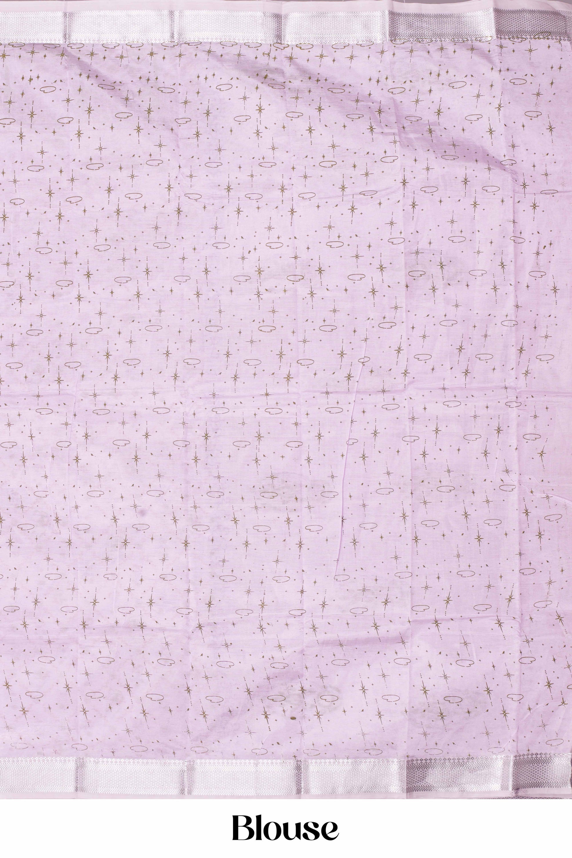 Lavender Chirala Cotton Saree Print With Silver Zari Border