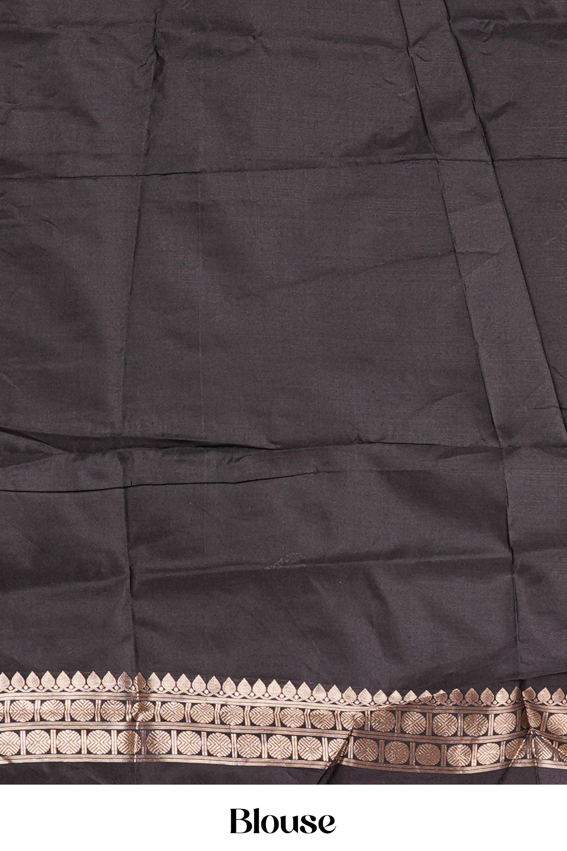 Maroon Semi Art Silk Saree Delicate Golden Zari Motifs Along With Thalampoo Zari Woven Across The Body. The Border Is Broad With Intricate Floral Zari Weaving & Rich Golden Zari Pallu Along With Contrast Blouse