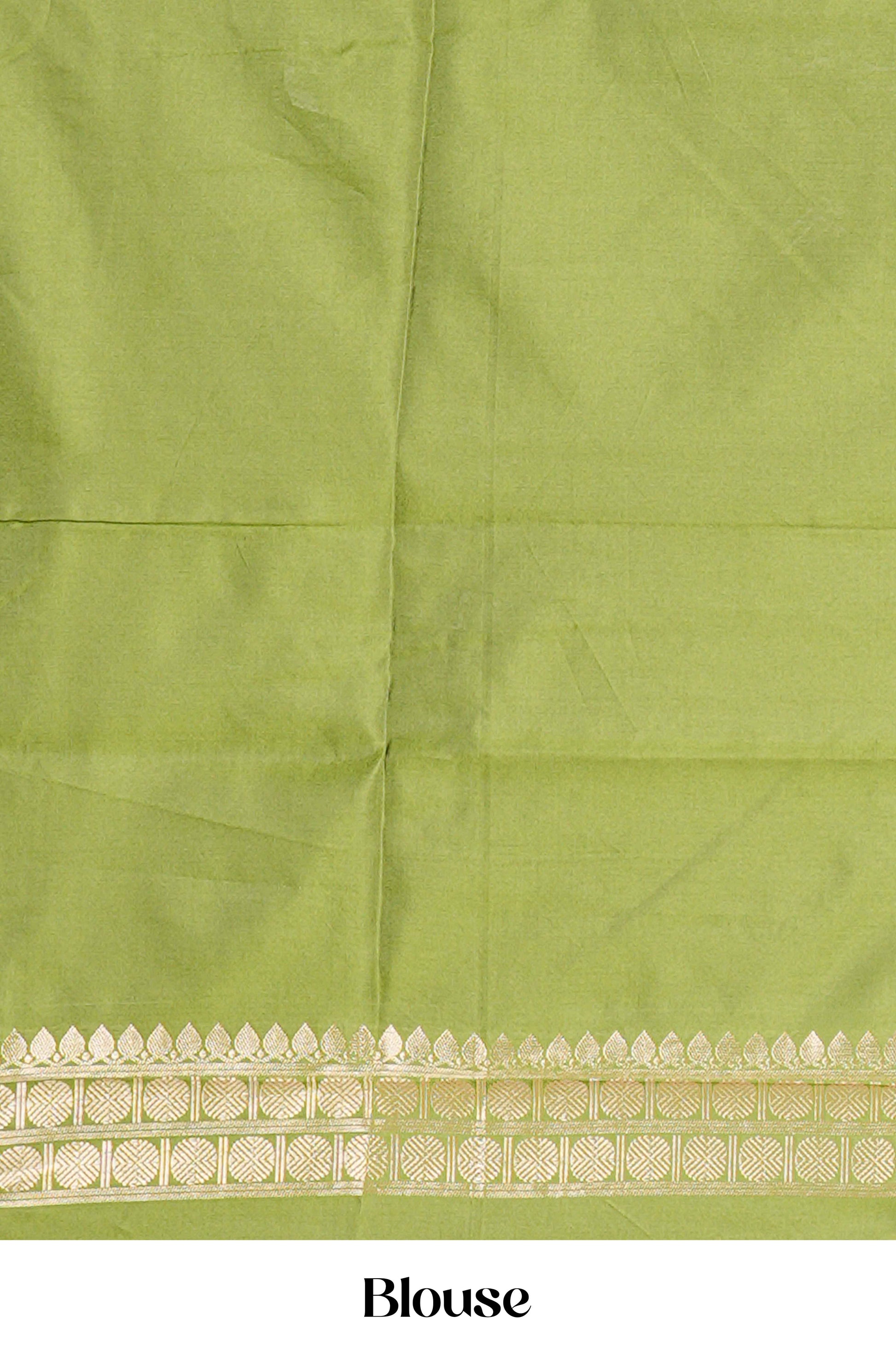 Blue Semi Art Silk Saree Delicate Golden Zari Motifs Along With Thalampoo Zari Woven Across The Body. The Border Is Broad With Intricate Floral Zari Weaving & Rich Golden Zari Pallu Along With Contrast Blouse