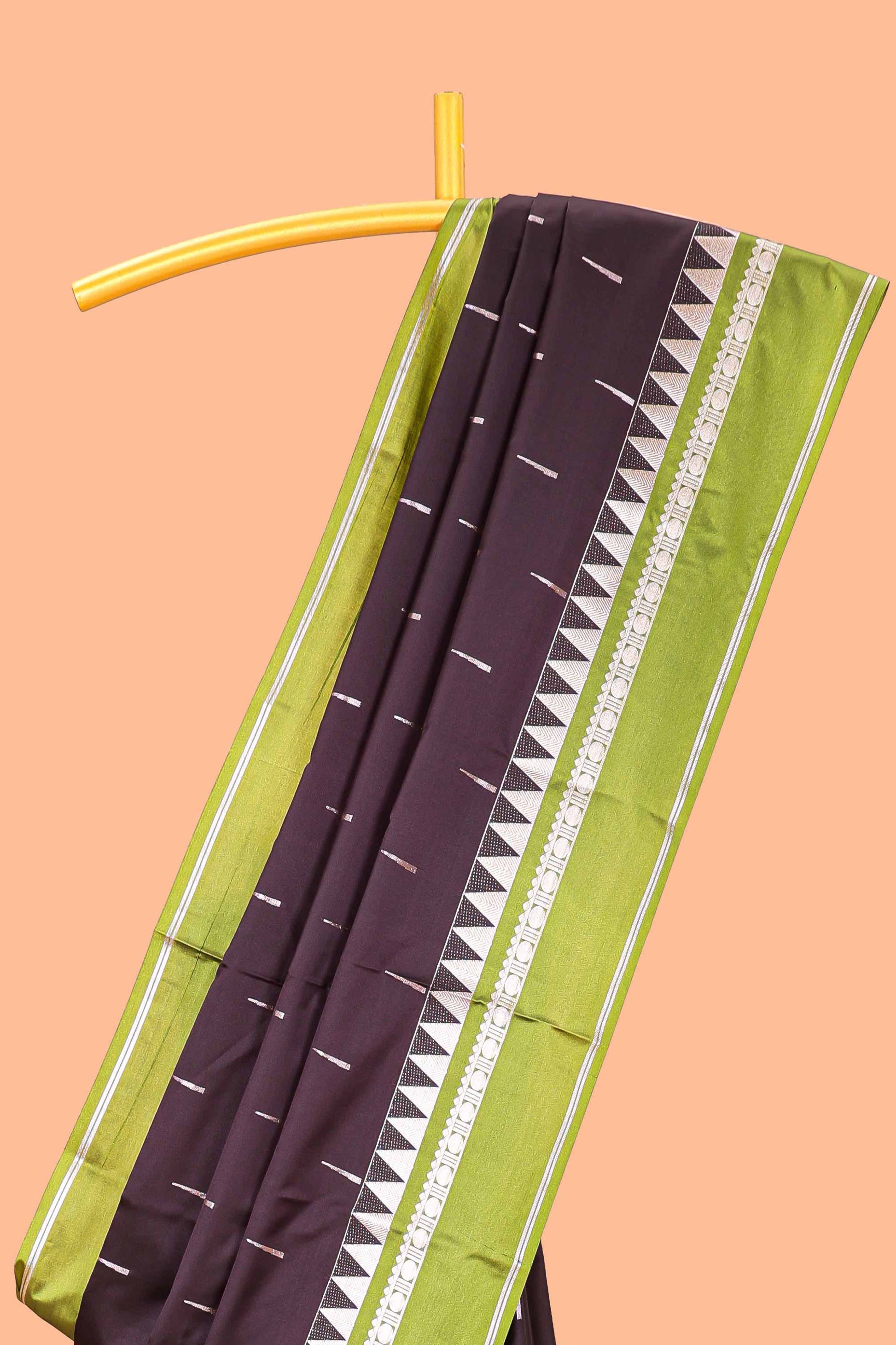 Wine Semi Soft Silk Saree All Over Zari Buttas Contrast Temple Border