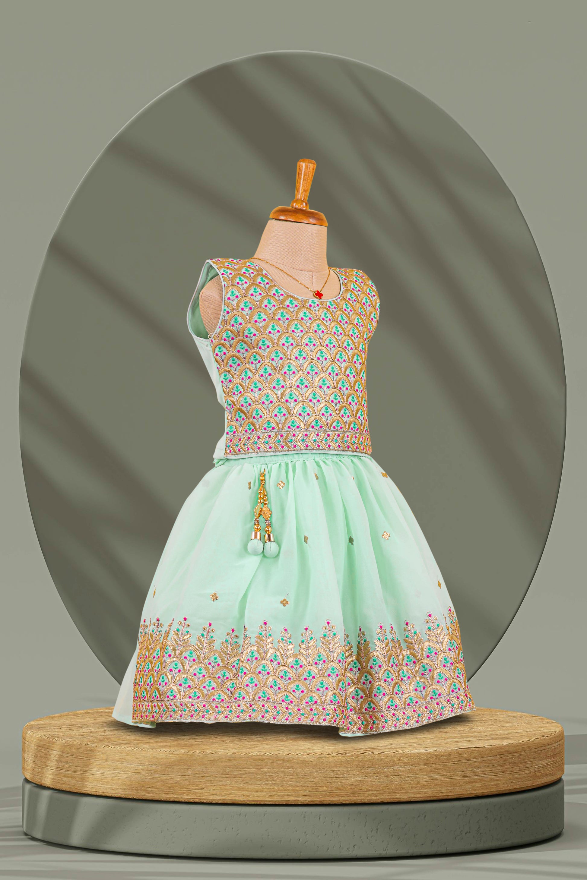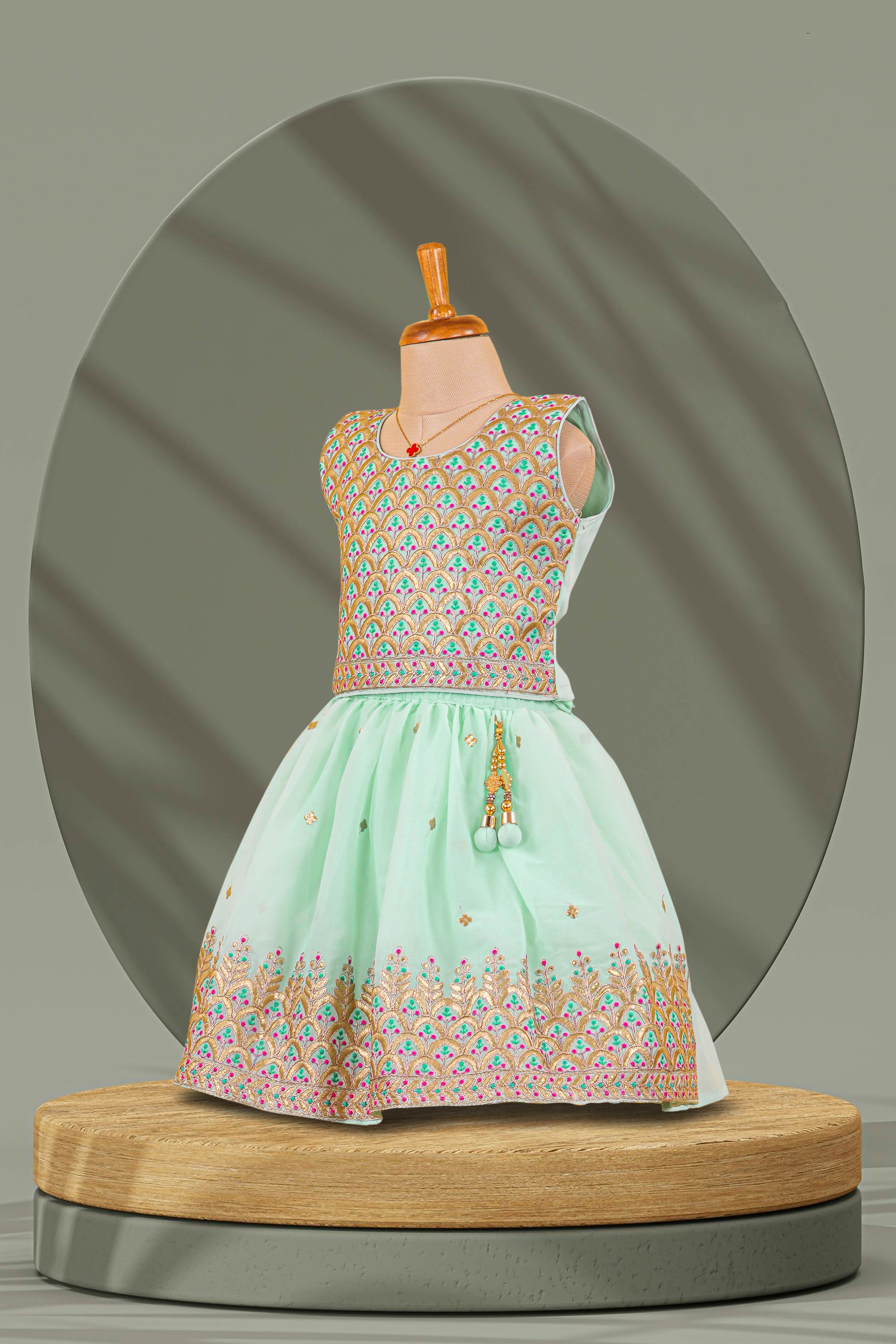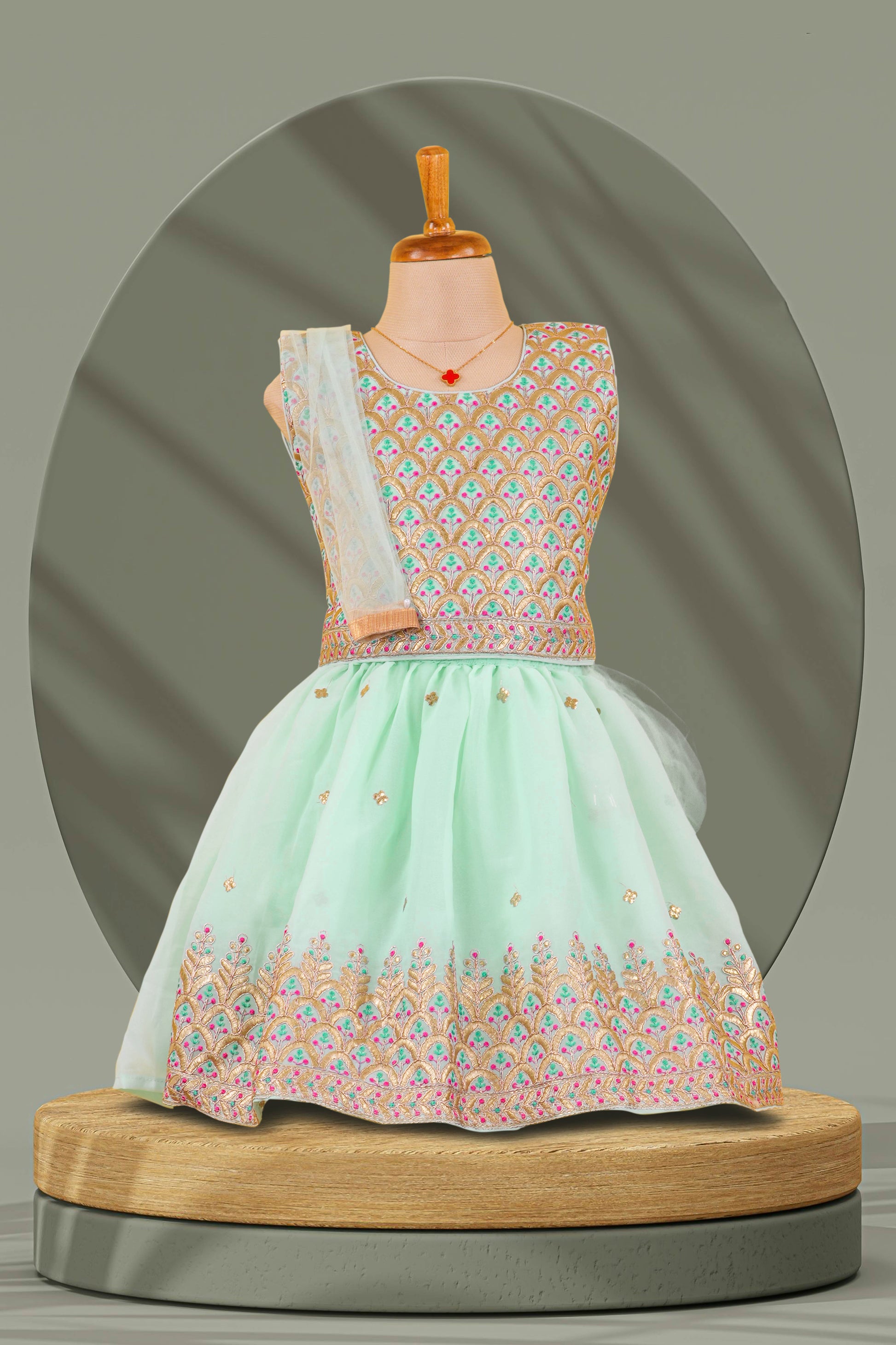 Sky Blue Short Midi Top All-Over Embroidery & Skirt Border Embroidery With Net Dupatta