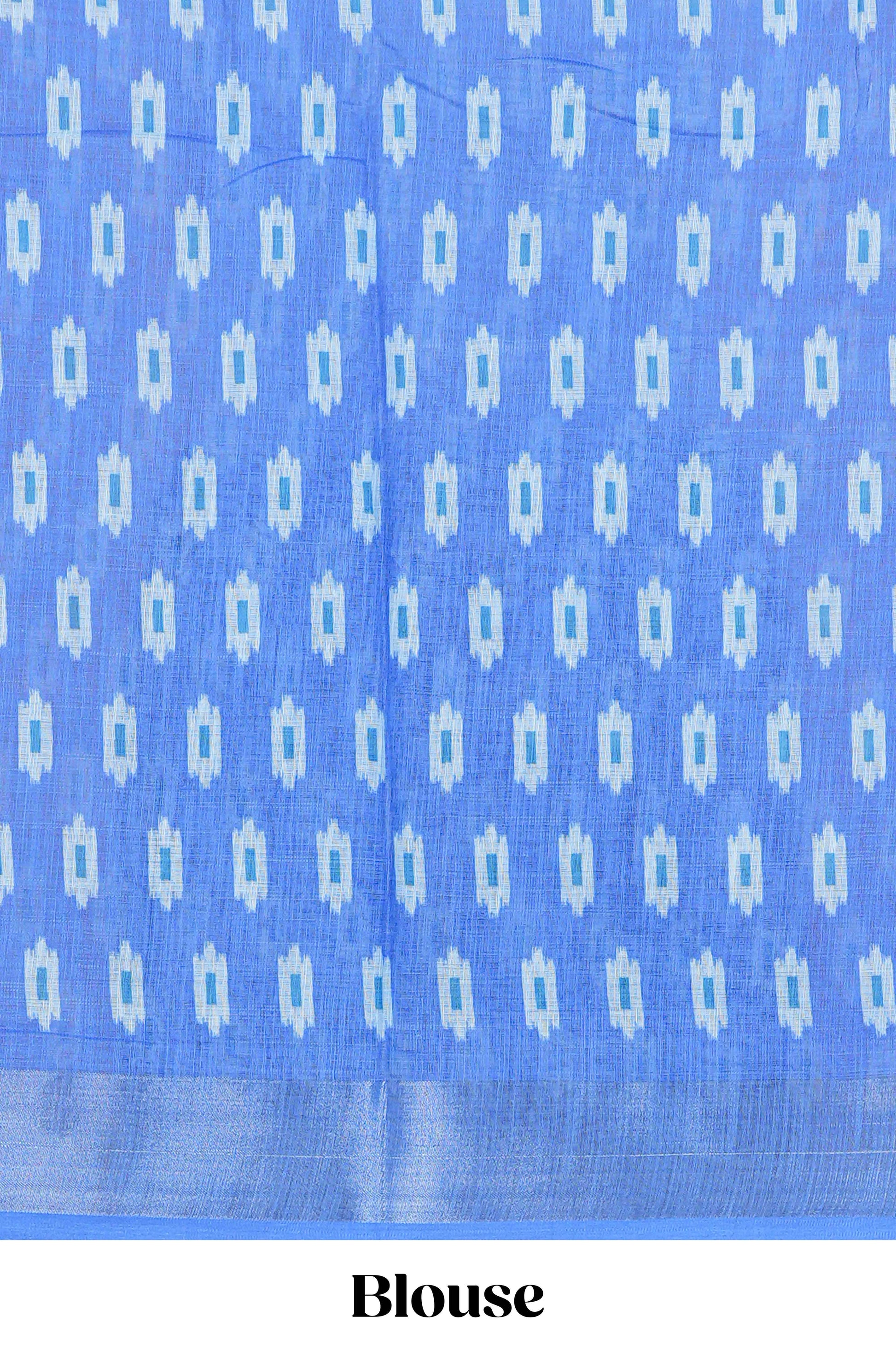 Sky blue Ikkat style linen cotton saree with contrast border and pallu