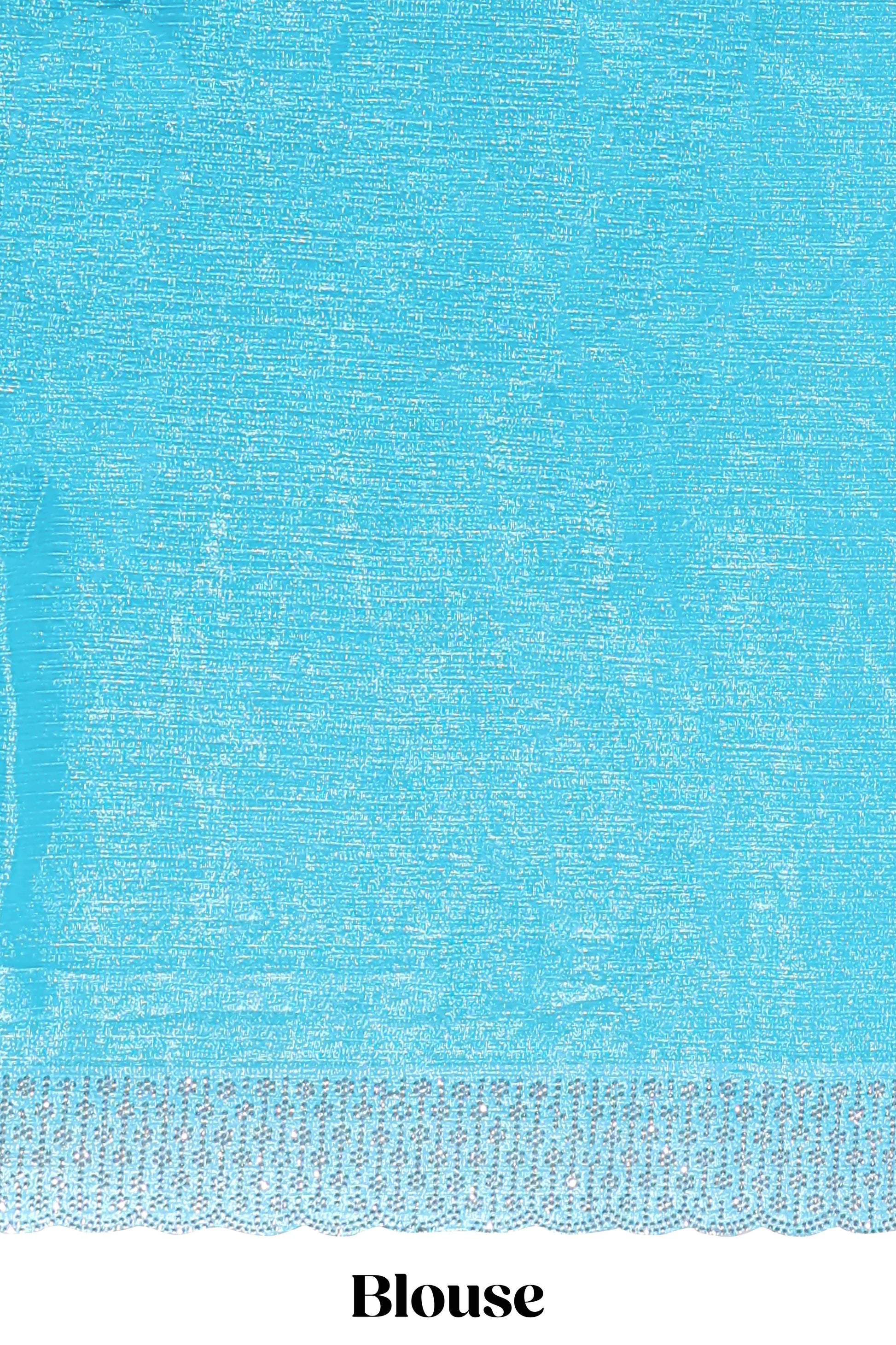 Turquiose blue floral butta design stone work designer saree with self scallop border and matching blouse