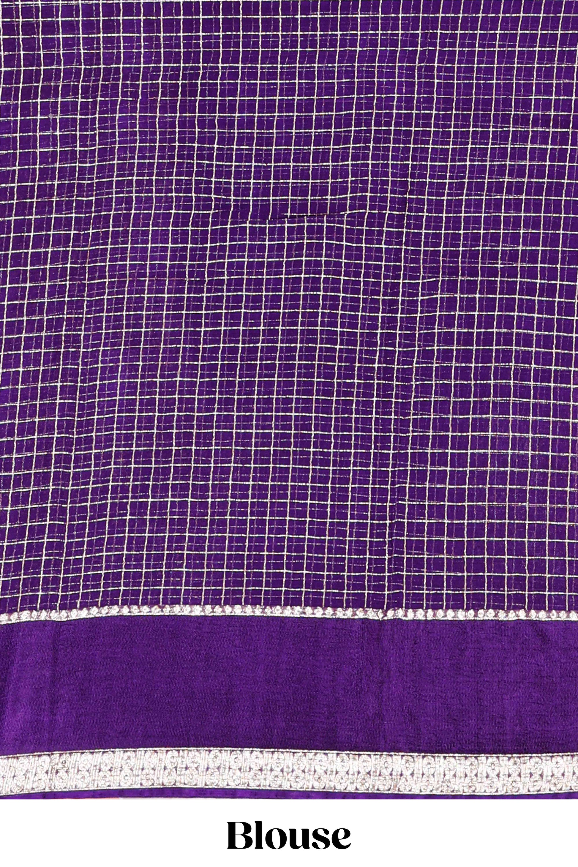 Violet Georgette Saree All Over Zari Check With Satin Border