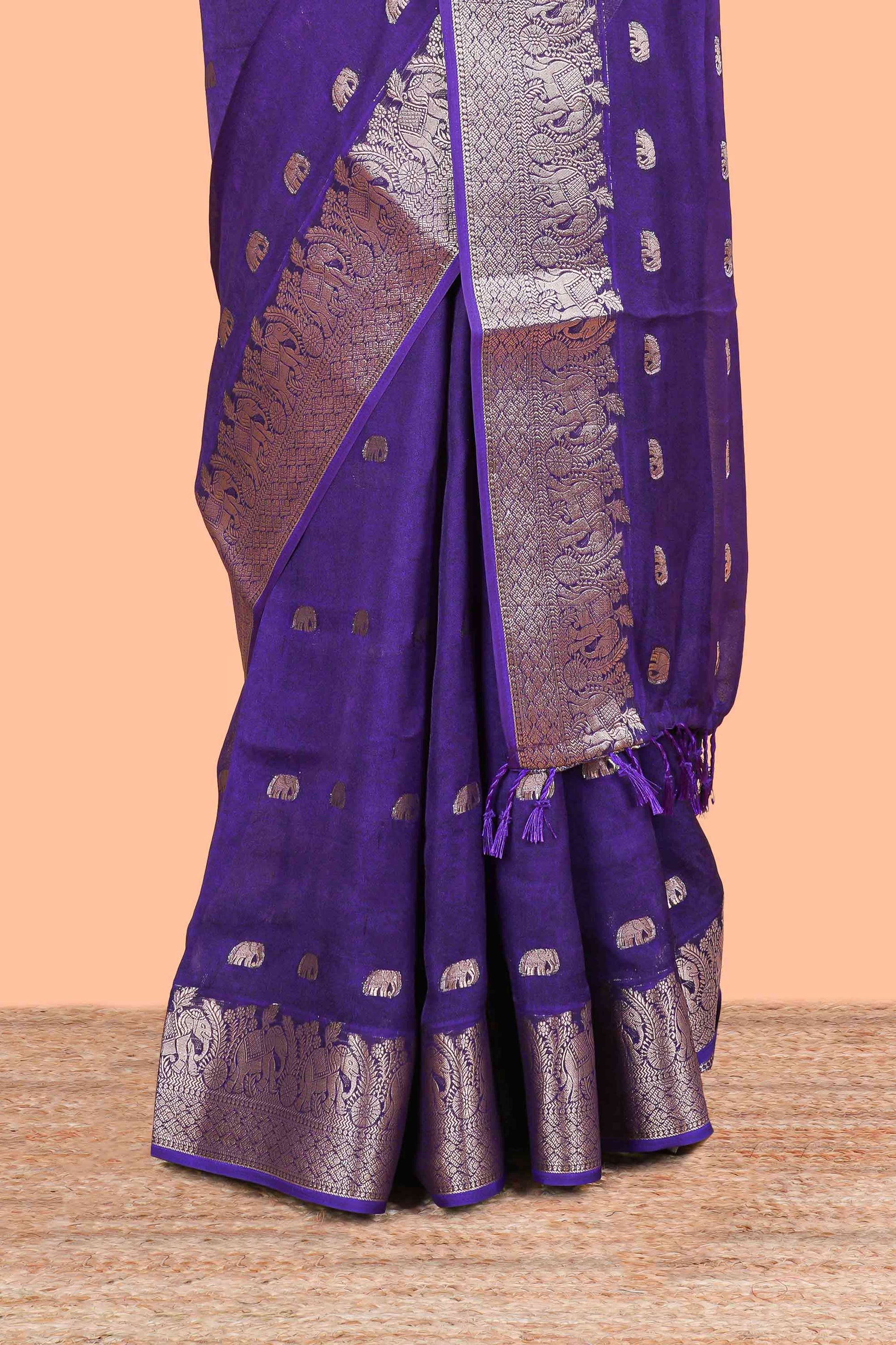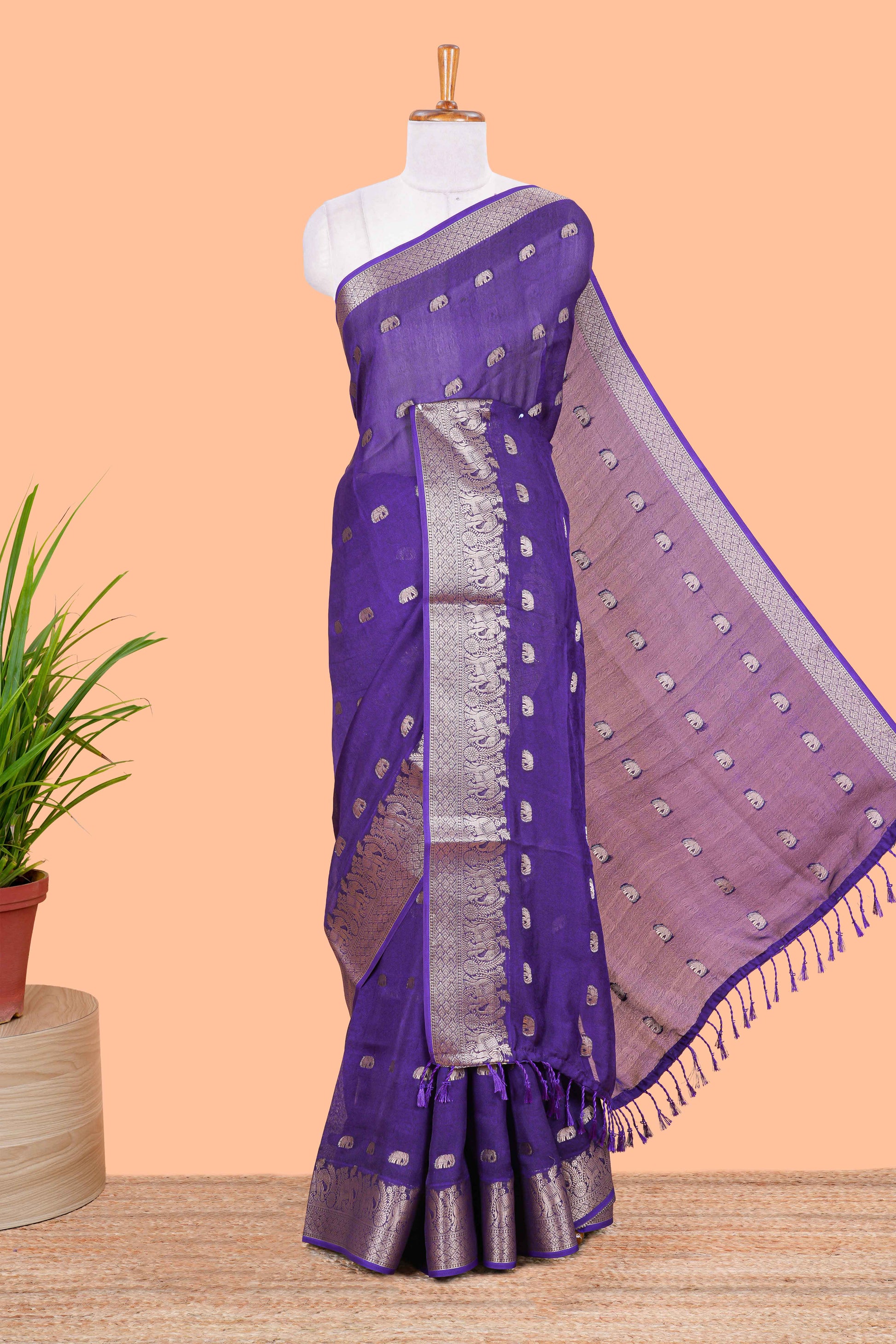 Violet marsh mallow saree with elephant butta and zari border, comes with contrast zari butta blouse