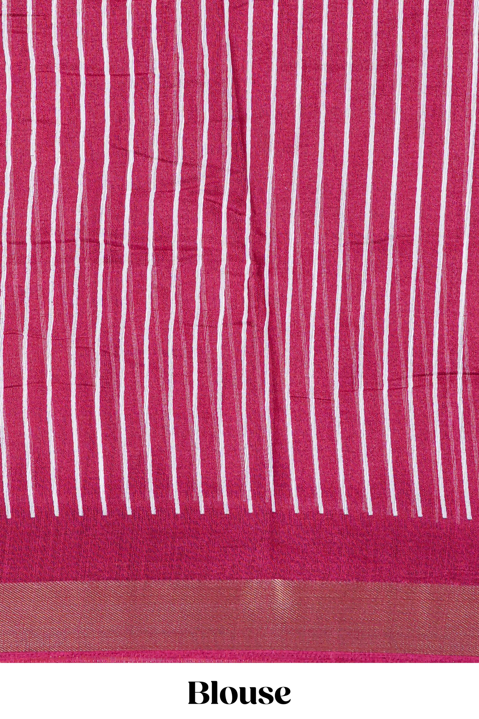 White geomentric ikkat style linen cotton saree with contrast border and pallu