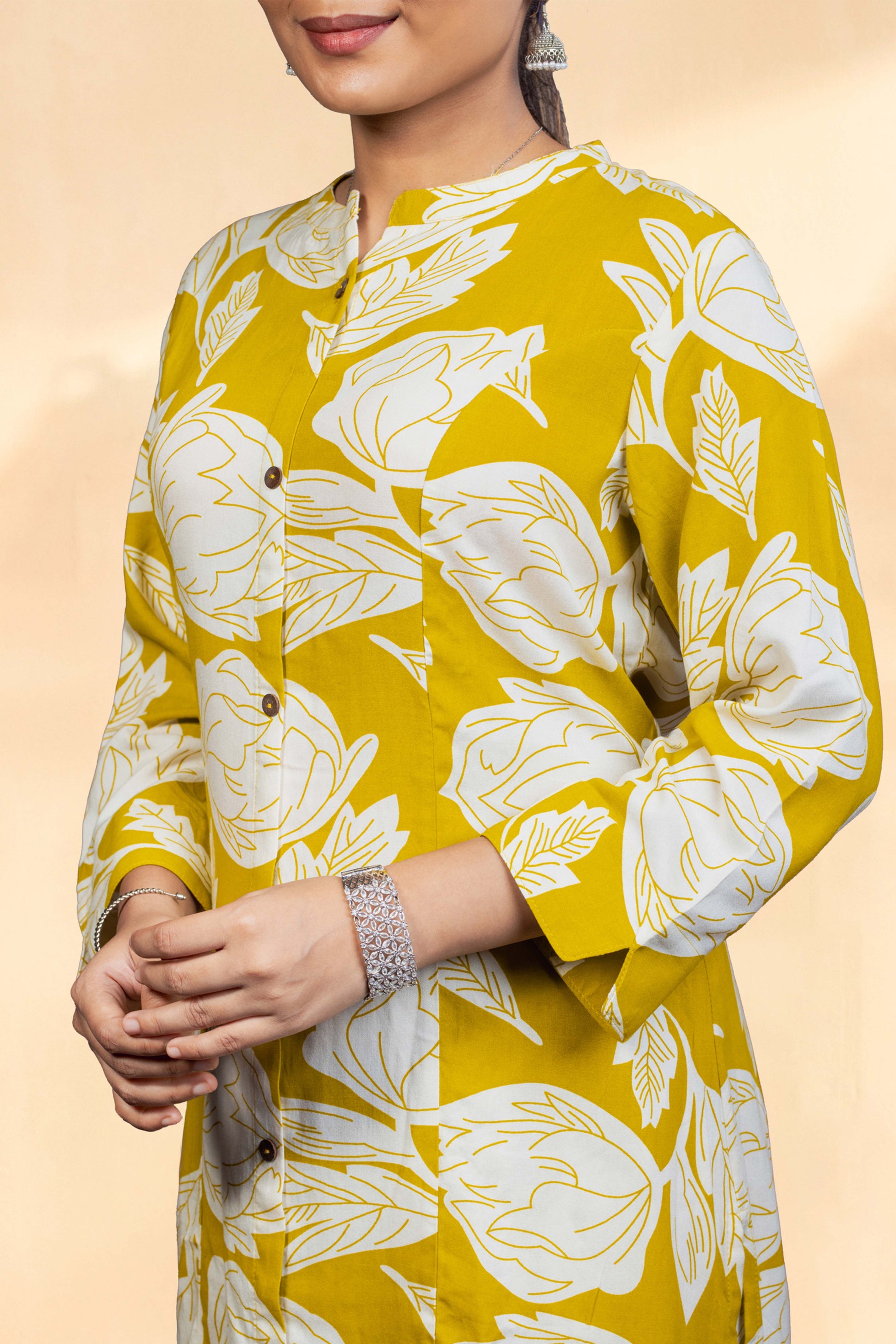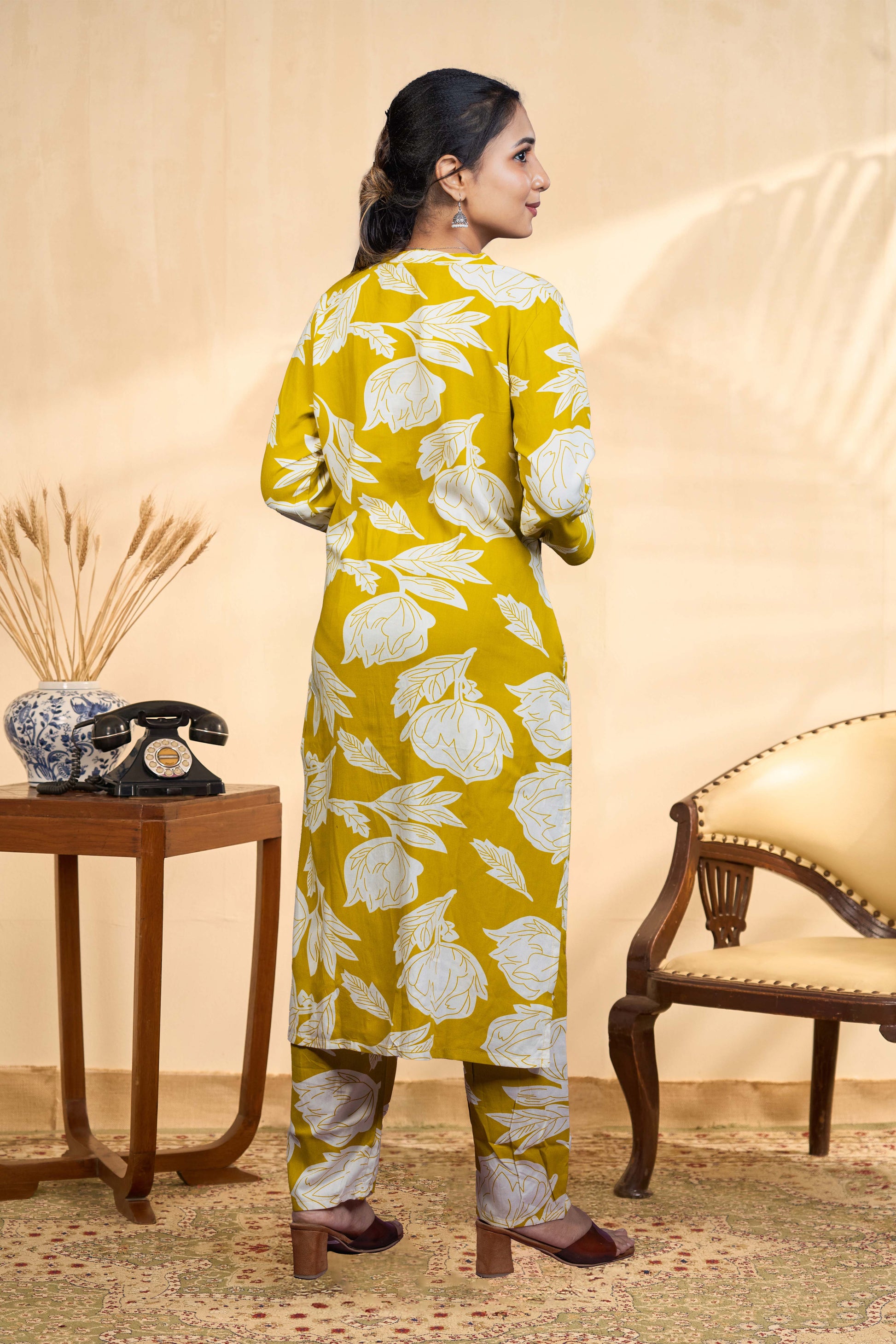 Olive Green Jaipuri Cotton Kurti Set All-Over Floral Print
