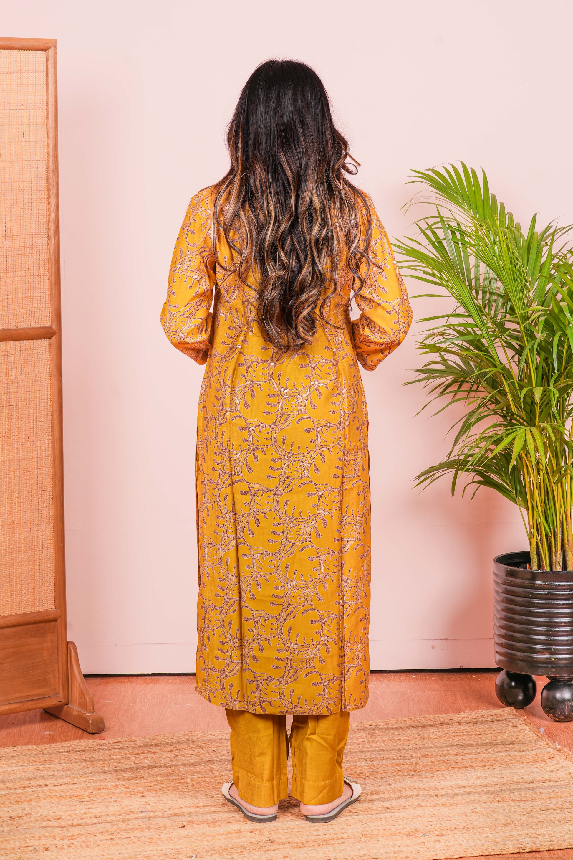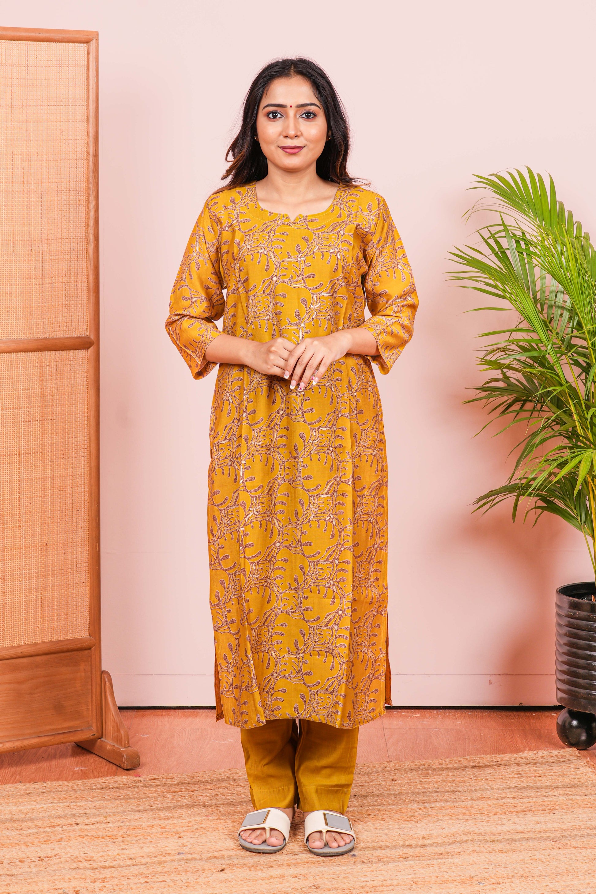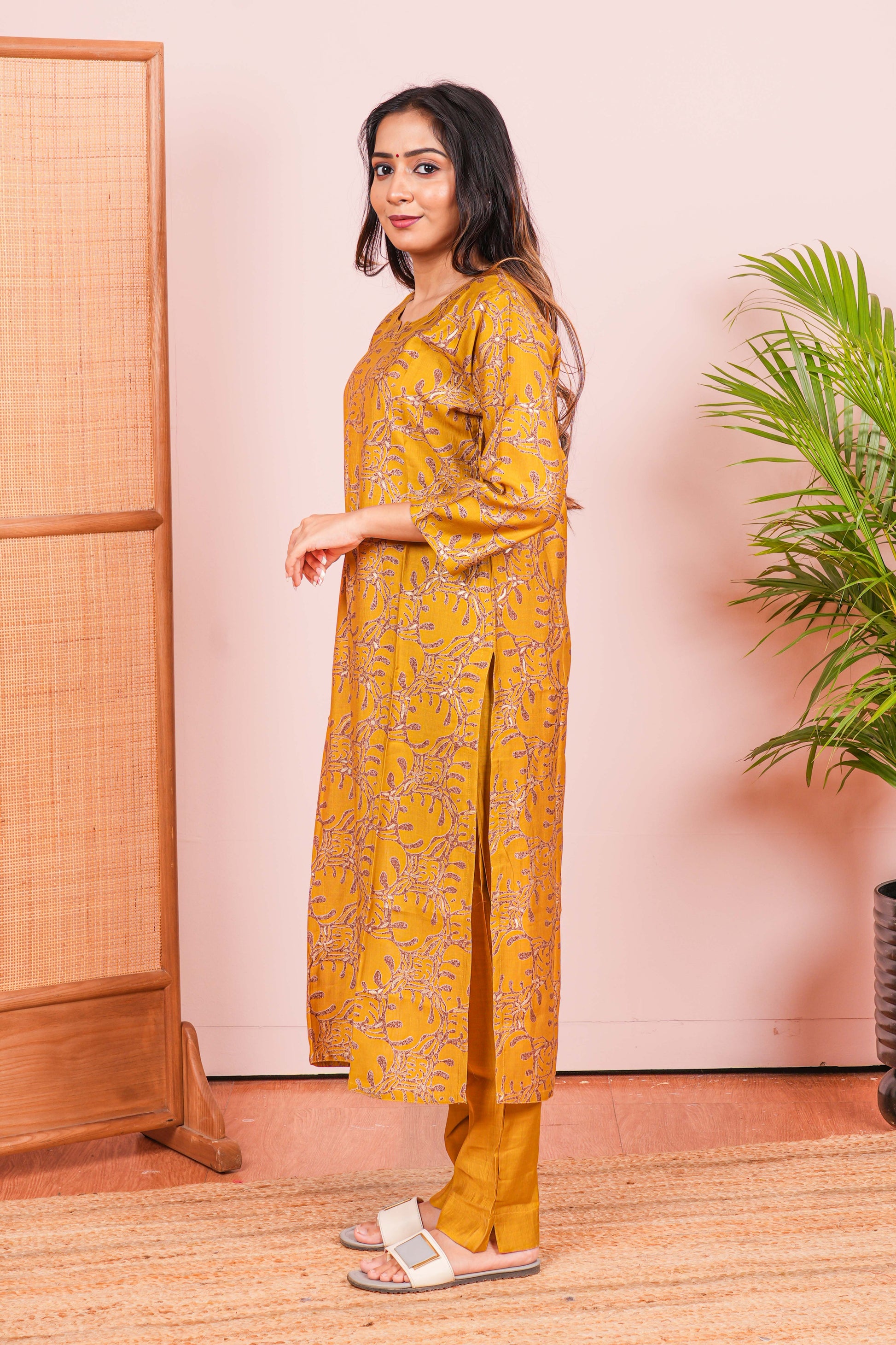 Yellow Kurti Set All-Over Digital Print