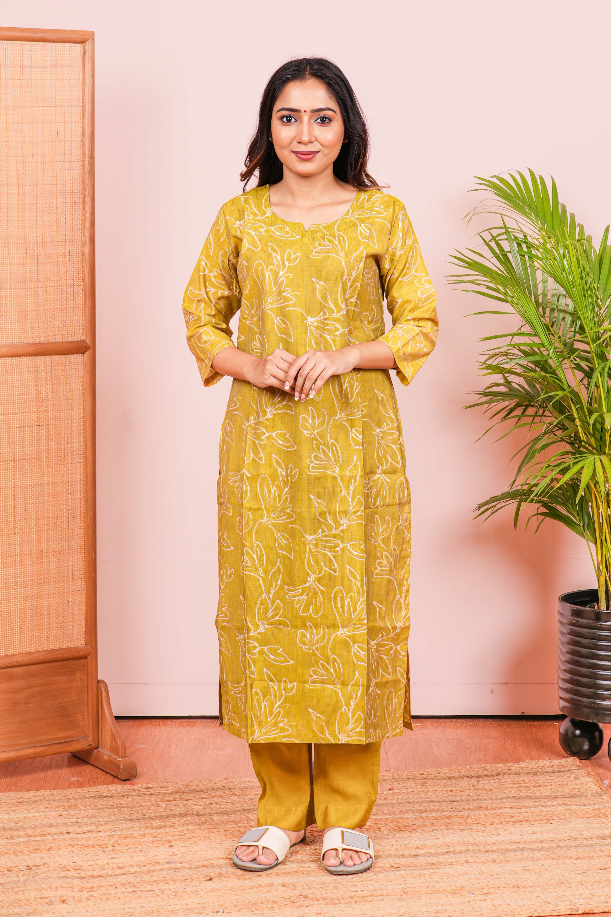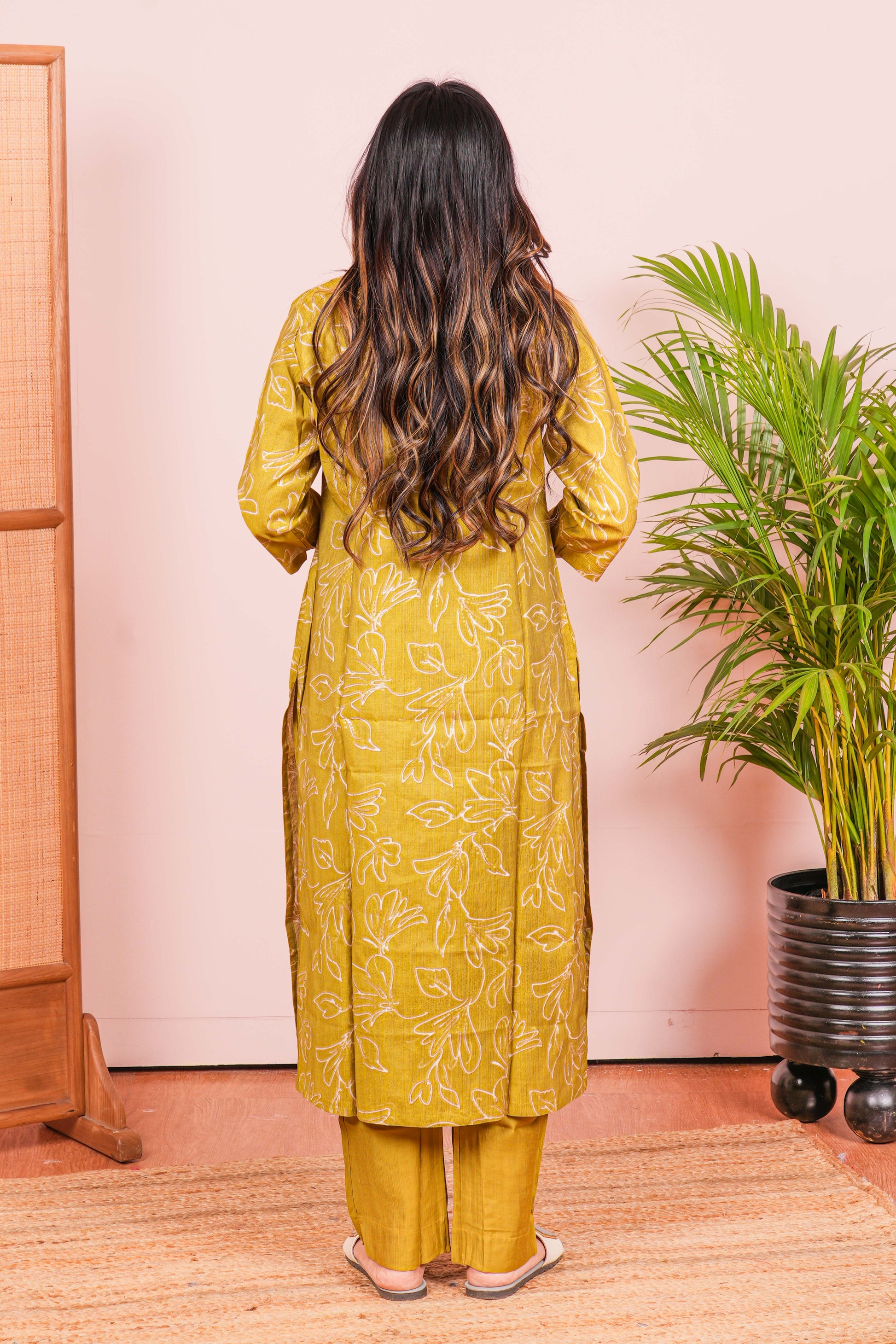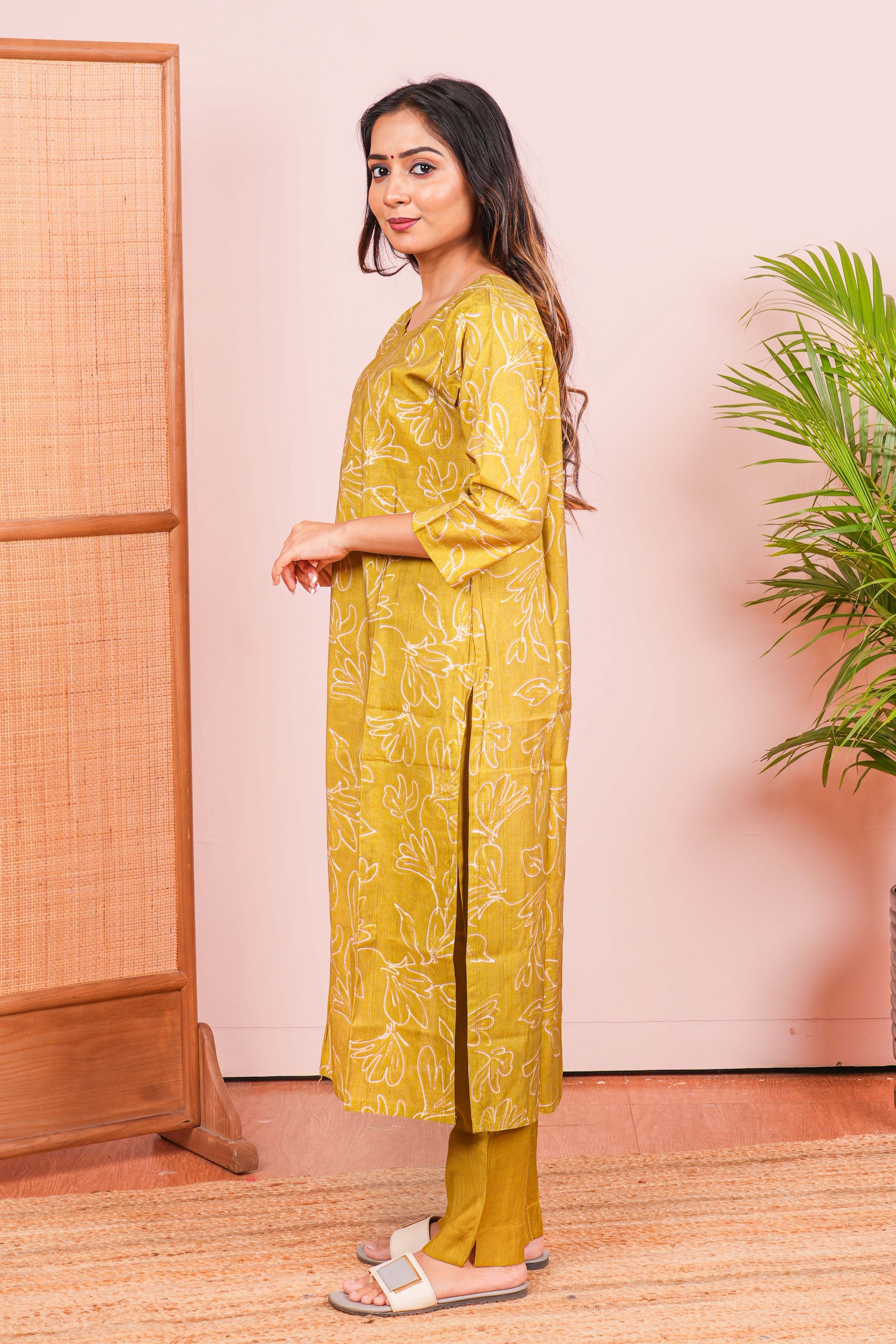 Olive Green Kurti Set All-Over Digital Print
