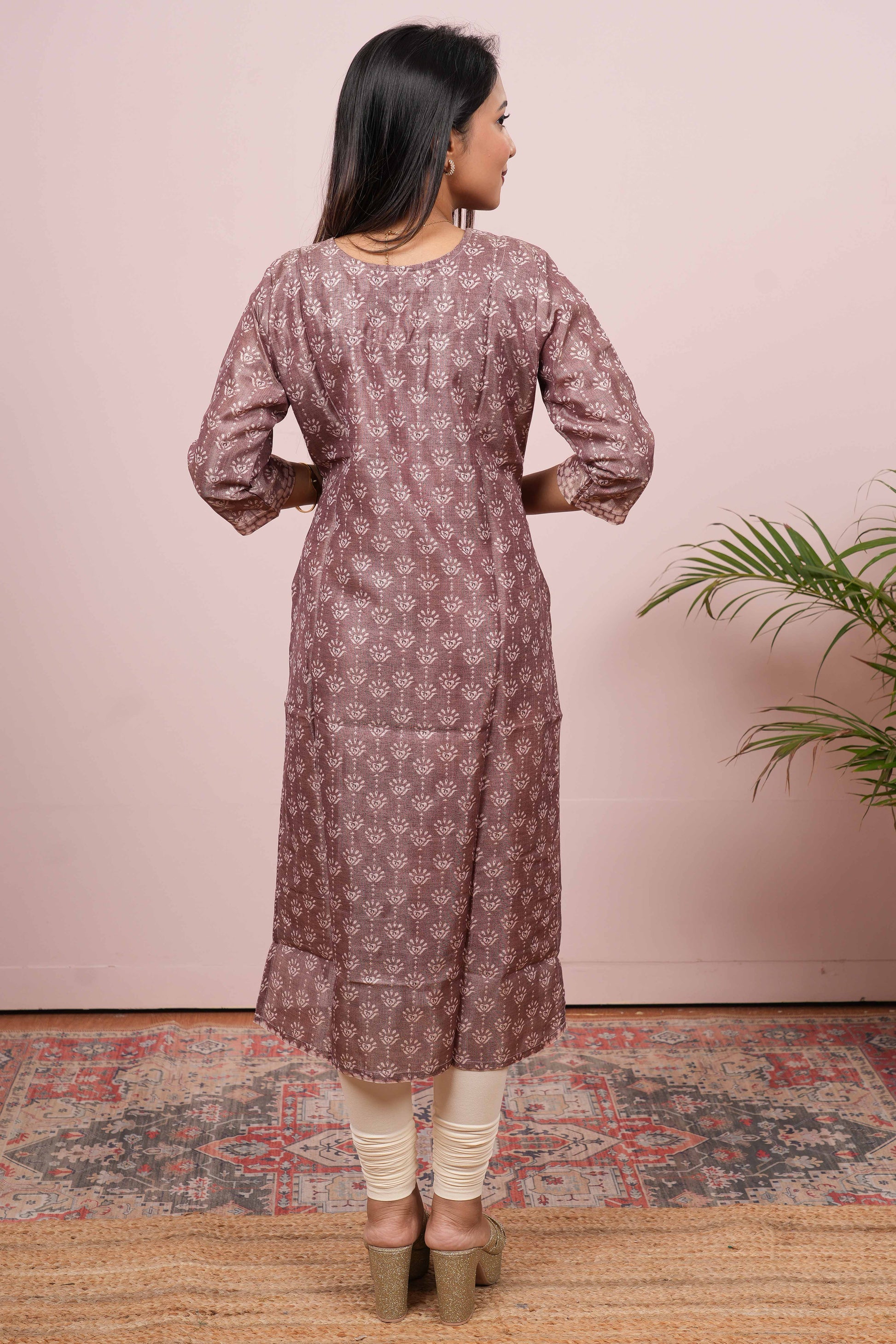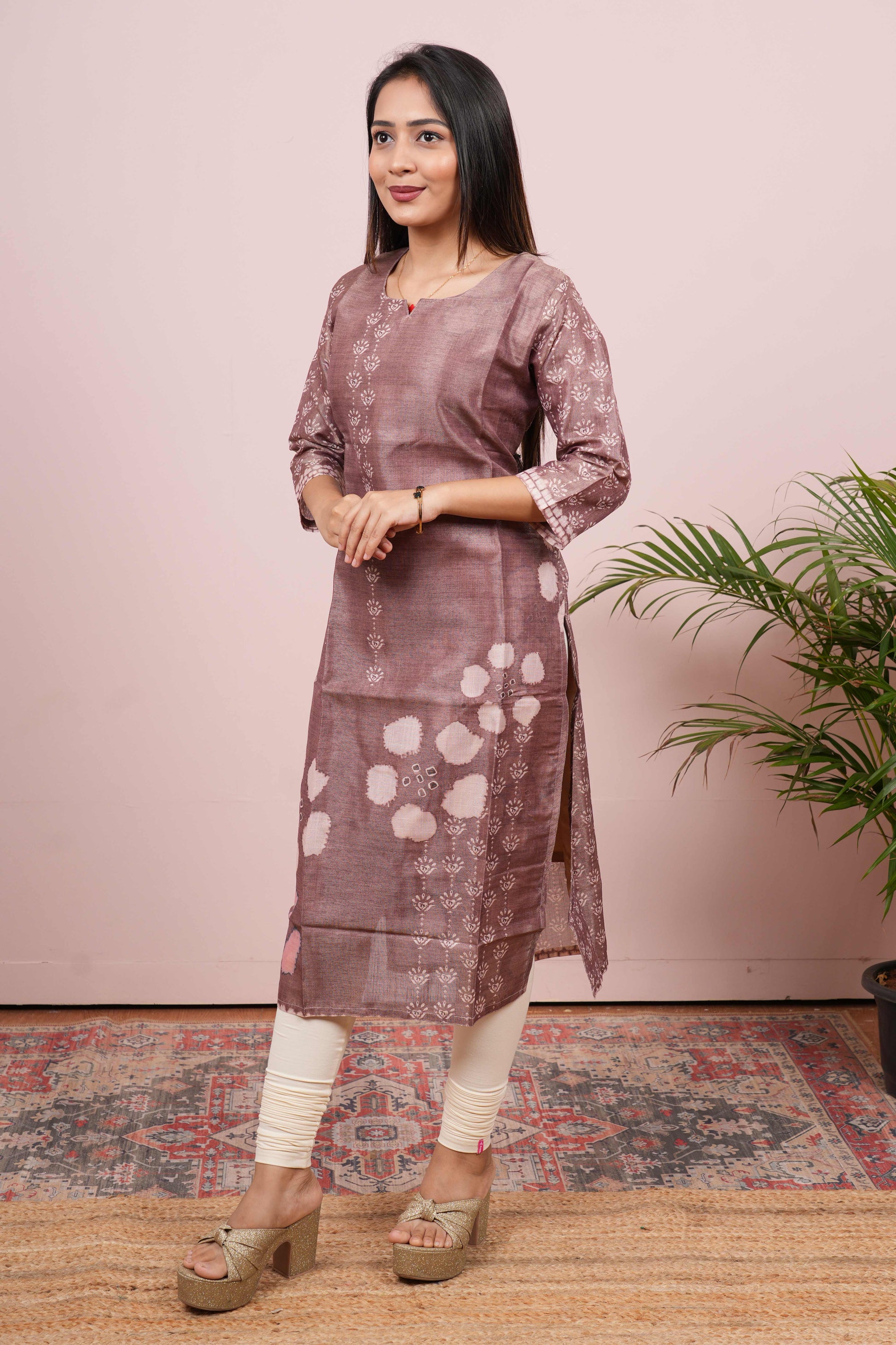Brown Side Open Top All-Over Flower Digital Print