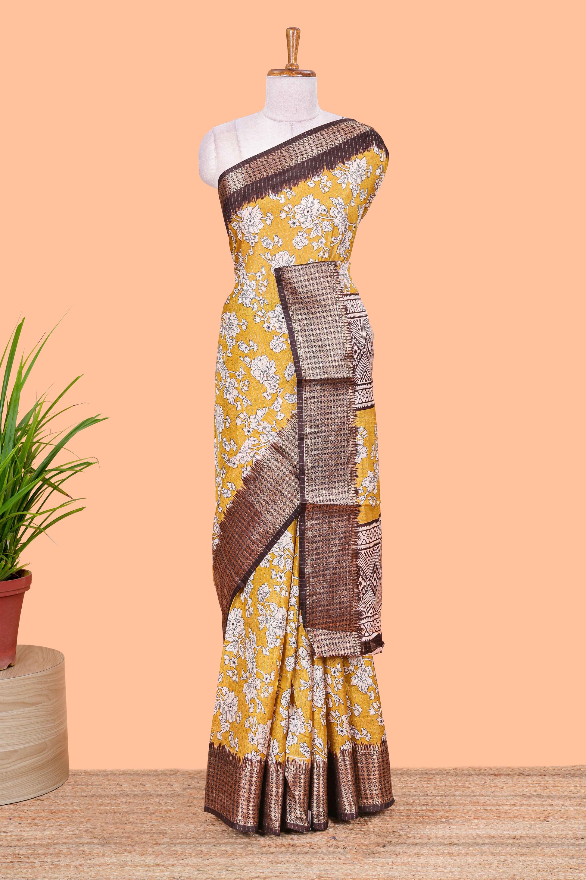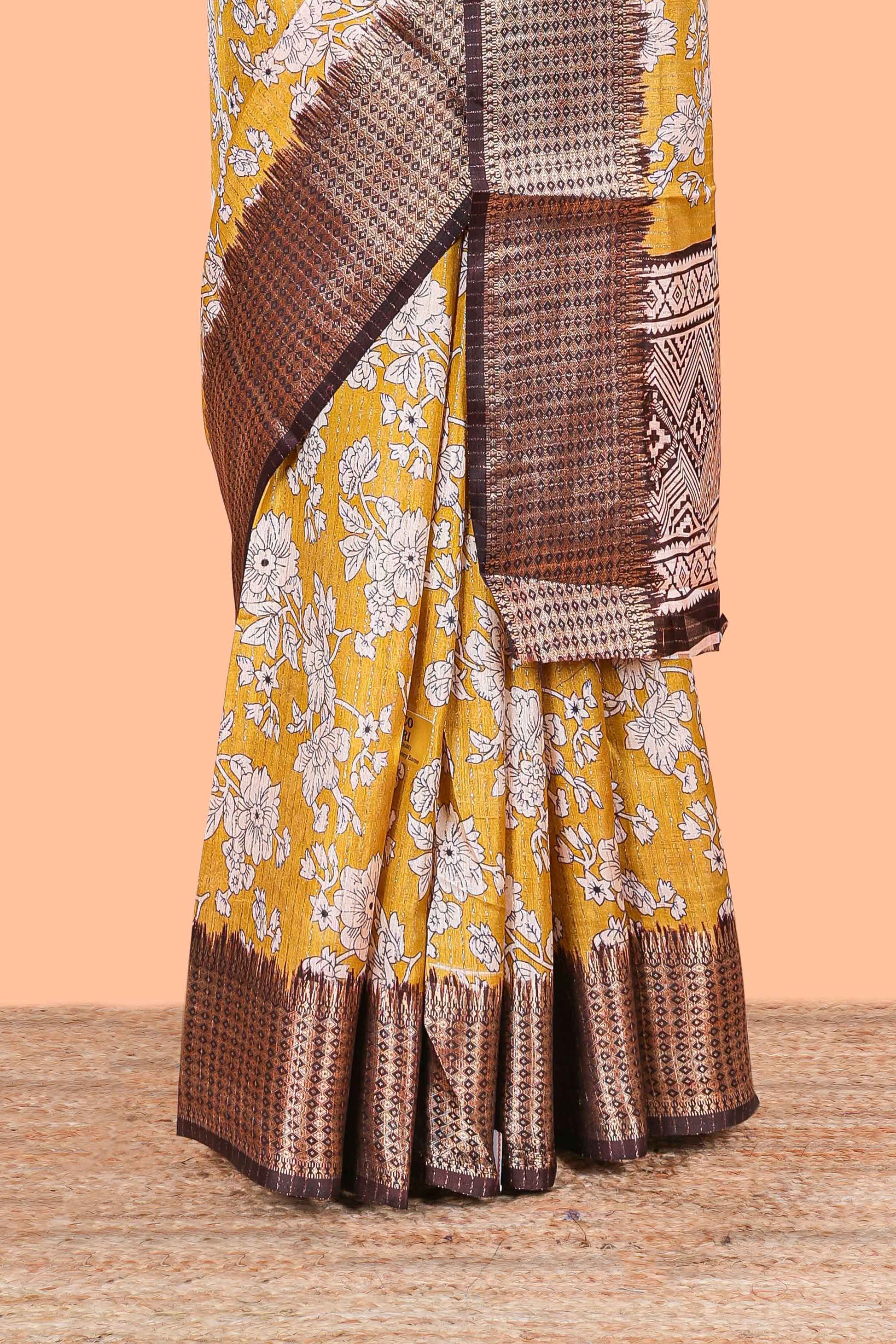 Yellow Dola Silk Saree Floral Printed With Jacquard Border