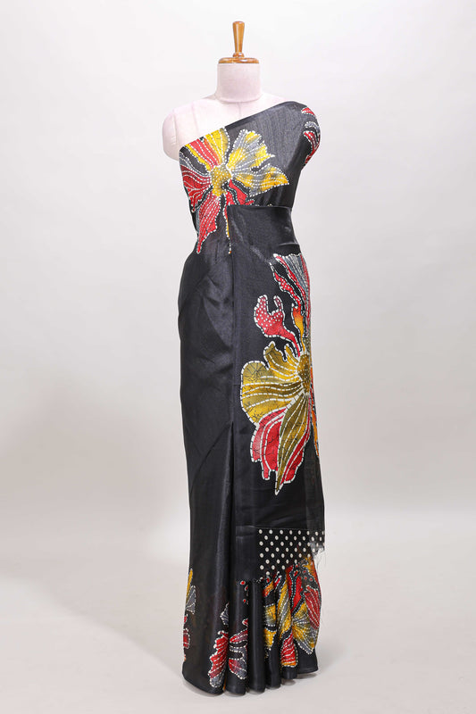 Borderless black floral print south cotton saree with matching butta blouse