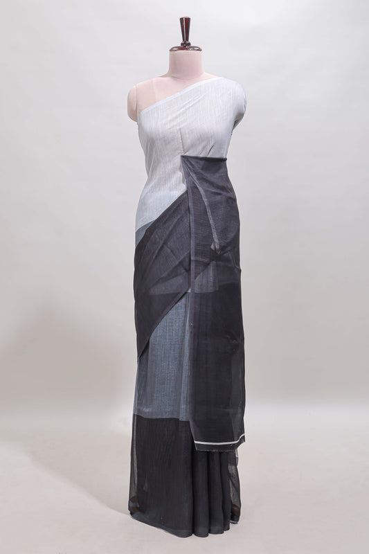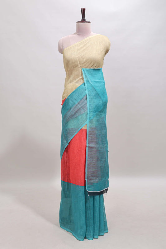 Borderless multi color dual shade plain linen cotton saree with contrast blouse