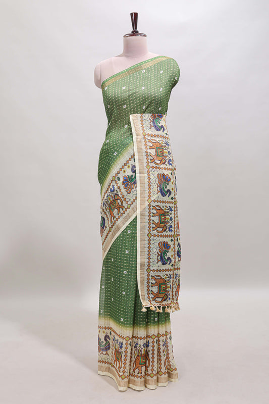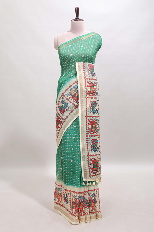 Green Chanderi Cotton Body and Pallu Kalamkari Print With Zari Border