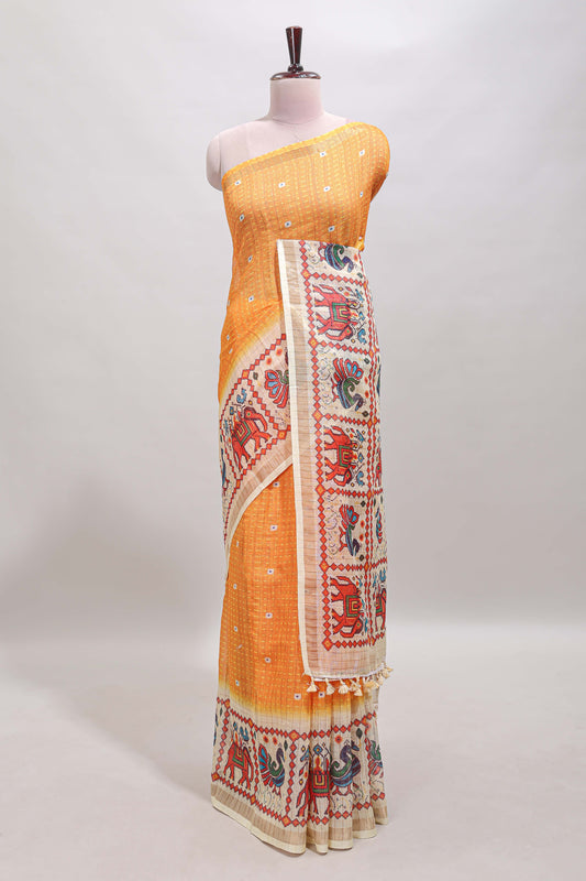 Yellow Chanderi Cotton Body and Pallu Kalamkari Print With Zari Border